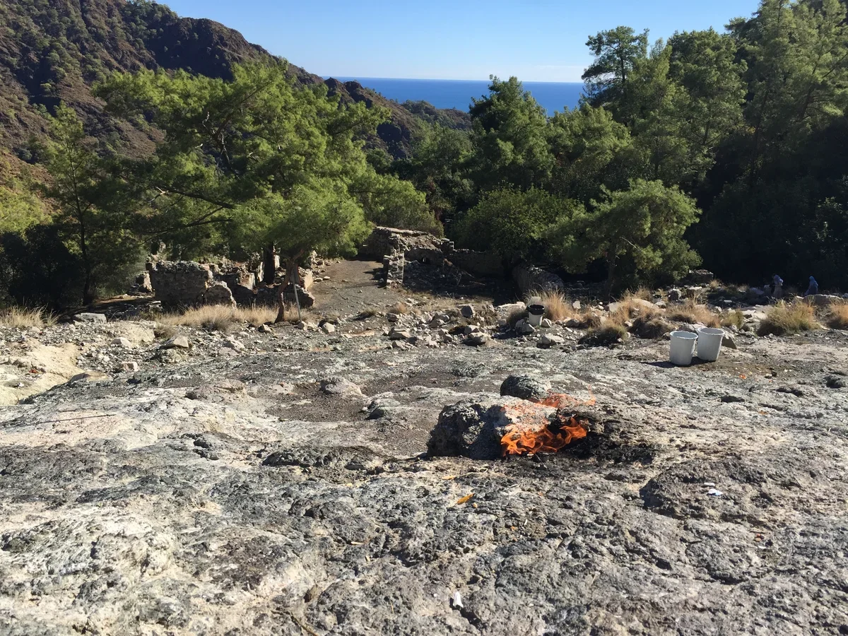 Во-вторых, это гора Химера или Янарташ с огнями, горящими не одну тысячу лет. Возгорание природного газа из расщелин в горной породе происходит само собой. Запах выделяется специфический, но ночью это зрелище впечатляет.