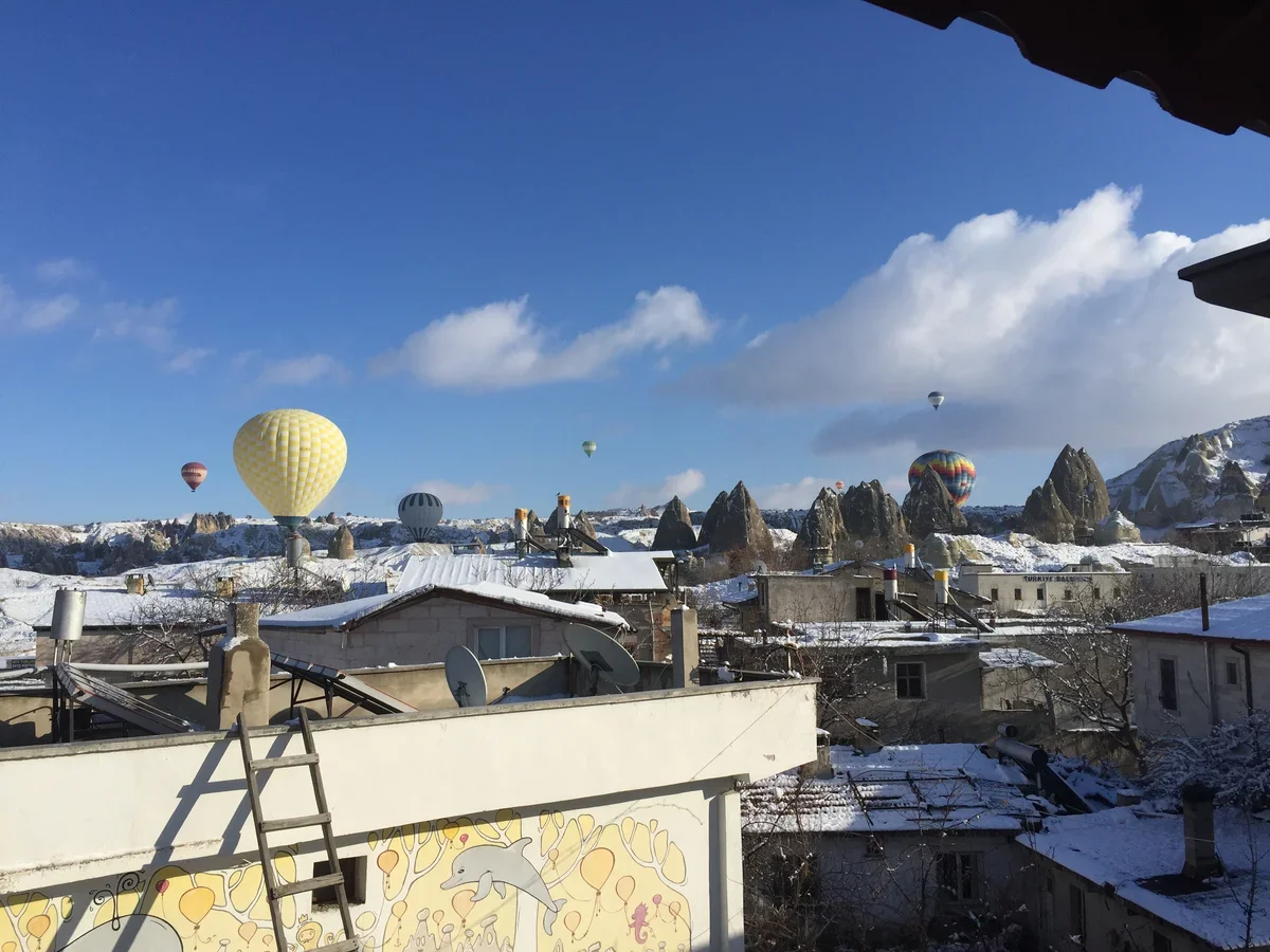 ВОЗДУШНЫЕ ШАРЫ НАД СНЕЖНЫМИ ШАПКАМИ КАППАДОКИИ