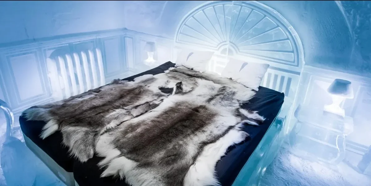 Уникальный отель в шведской части Лапландии полностью создан изо льда, и каждый год его строят заново: в апреле лед начинает таять. Гостям отеля предлагается «холодное размещение» в ледяных комнатах с температурой от 4 до 8 градусов ниже нуля. Есть варианты и потеплее: можно разместиться в шале, или погреться в сауне отеля.