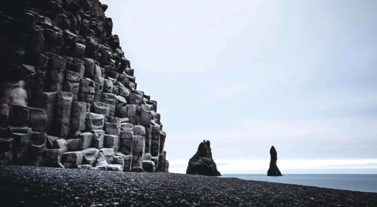 Рейнисфьяра (Reynisfjara, Исландия). Пляж с черным песком и базальтовыми скалами, создающими сюрреалистический пейзаж, который захватил воображение кинематографистов и поклонников «Игры престолов», «Викингов» и «Звездного пути».