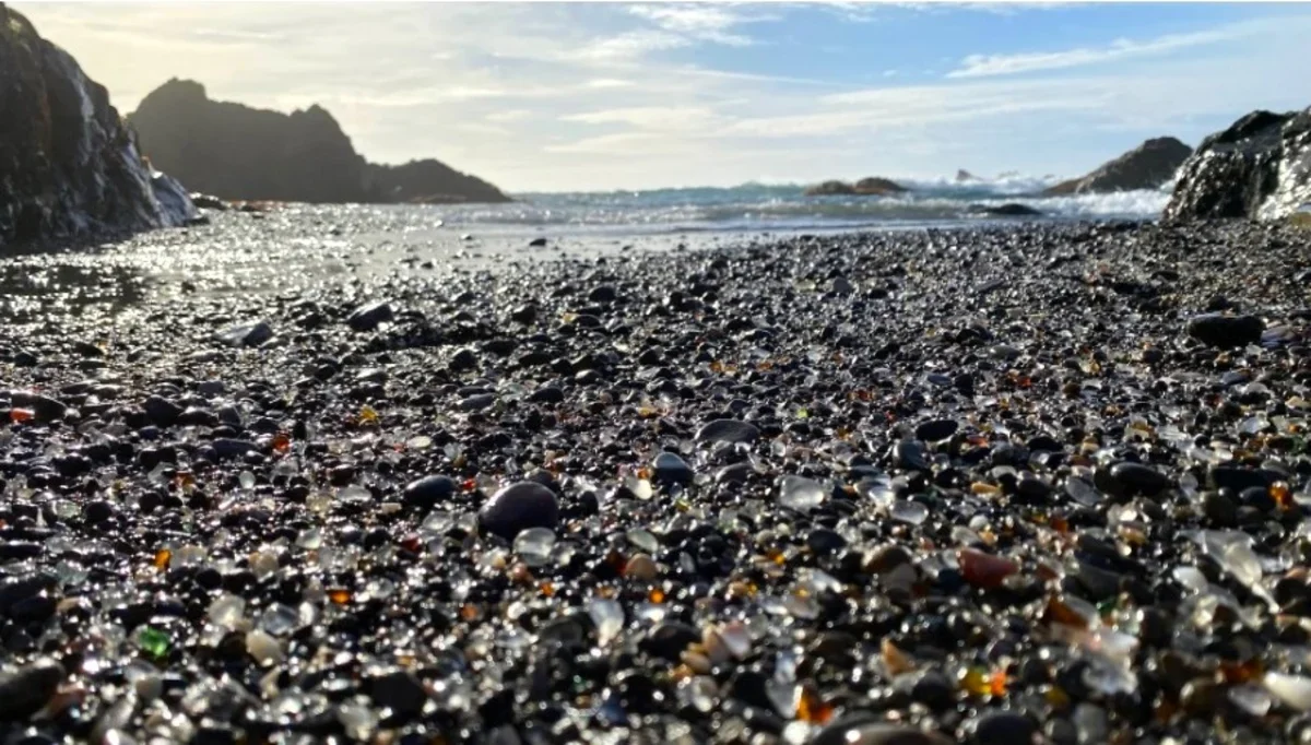Стеклянный пляж (Glass Beach, Калифорния). Как он появился, никто точно не знает. По одной из версий, сюда свозили отходы с местного фарфорового завода. До 2011 года бухта имела не самую лучшую репутацию и считалась городской свалкой. Но природа взяла свое: море превратило эти промышленные отходы в сверкающую разноцветную гальку.
