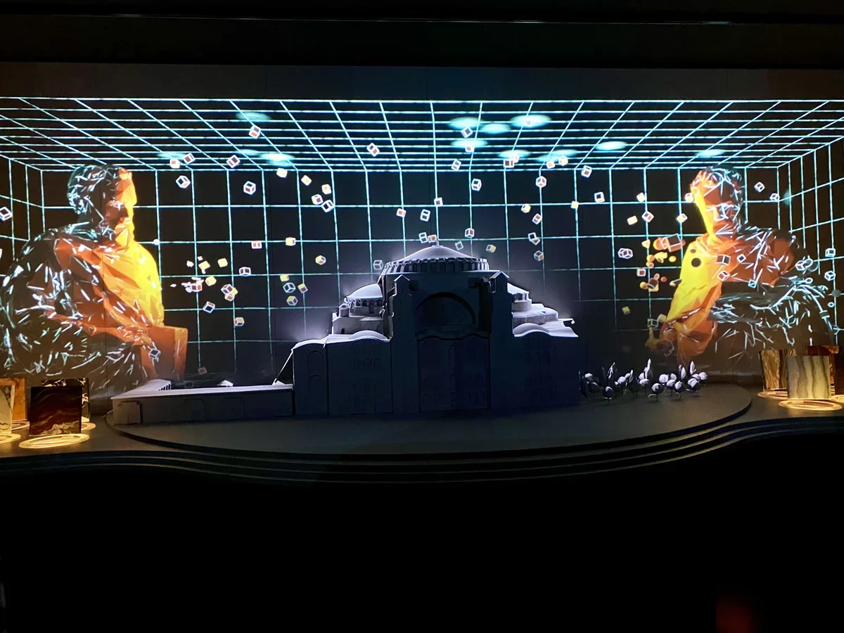 Он интерактивный и представляет собой лабиринт затемненных комнат с огромными экранами, на которых наглядно и понятно показываются хитросплетения судьбы главного храма Стамбула. А светозвуковые эффекты погружают посетителей глубоко в историю , которую рассказывают страница за страницей многоязычные аудиогиды.