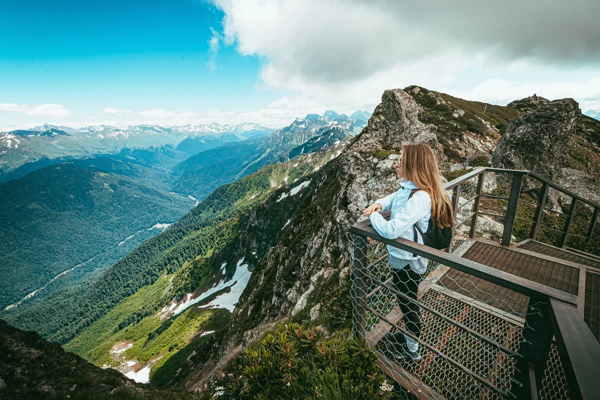 Любителей легкого треккинга и созерцания природы на Роза Хутор ждут живописные пейзажи, кристально чистый воздух и возможность погрузиться в атмосферу подлинного горного уединения, которые сделают поездку на курорт незабываемой.