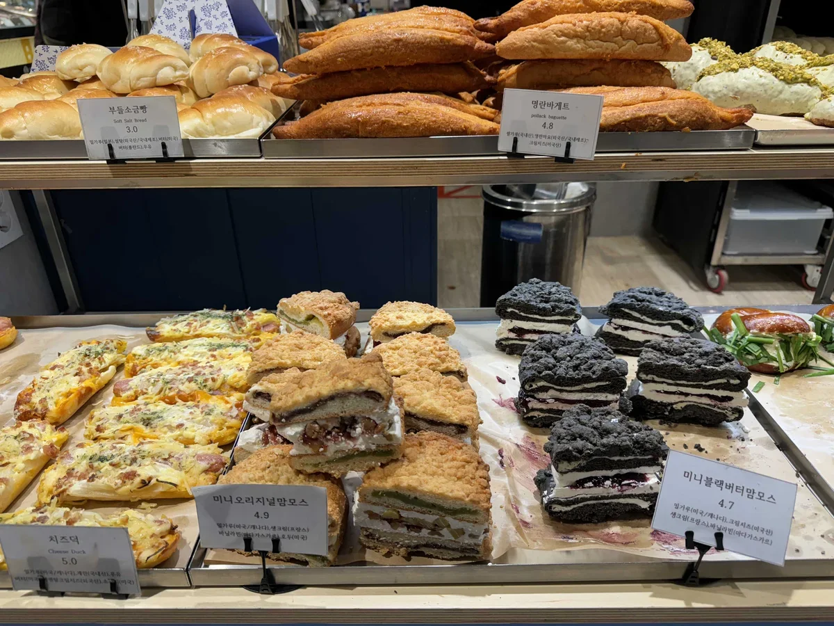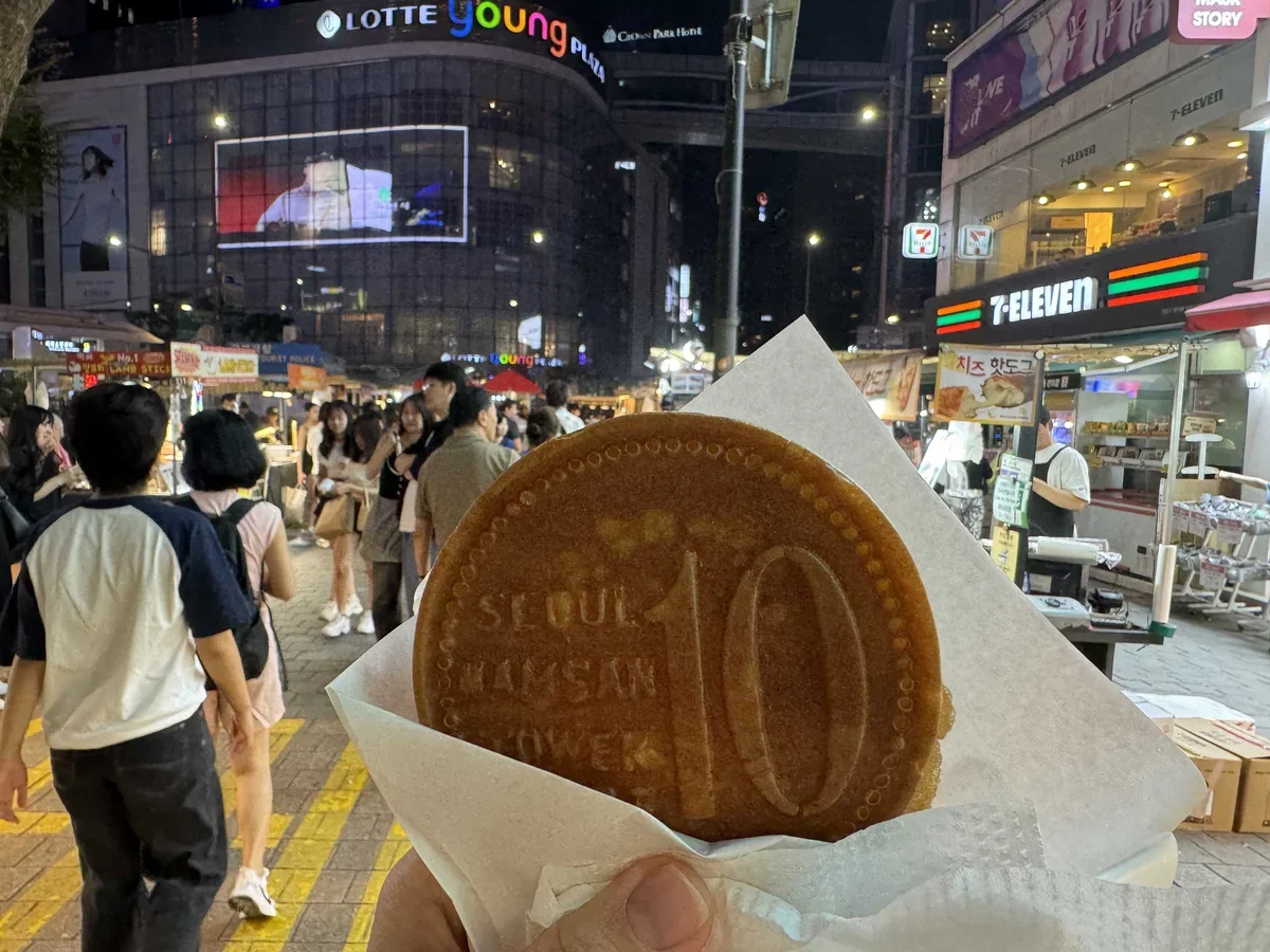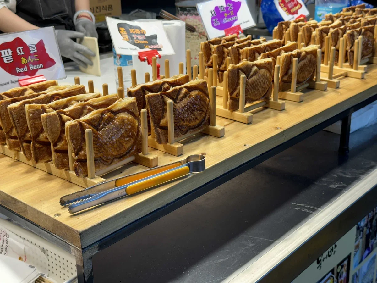 Конечно, можно найти традиционные корейские угощения: корндоги (сосиски в тесте), жаренную корейскую курочку, токпокки (рисовые клецки) в остром соусе, вафли в форме рыбок или монеток 10 вон с начинкой из сыра и заварного крема, куриные лапки без кости и многое другое.