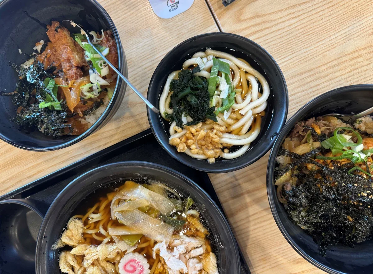 Самое интересное, что все блюда можно подогреть и съесть прямо в магазине. Здесь же, например, можно купить рамён, заварить его и пообедать.