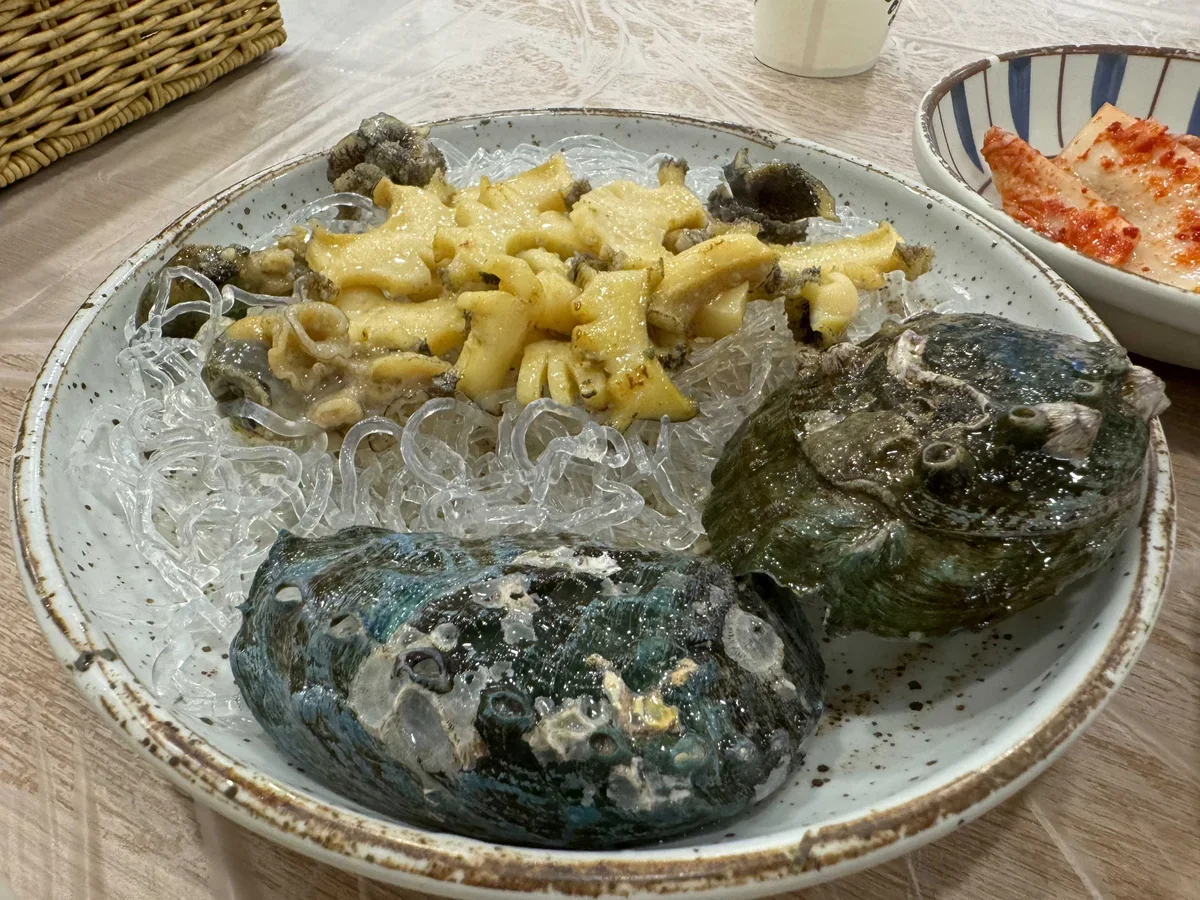 Мы зашли в один из них, чтобы попробовать рыбу и абалон. К этому заказу нам дали еще закуски и уху, которая варилась тут же на столе. Еда была очень вкусной и свежей. Есть сырое мы не рискнули, поэтому заказали абалон на гриле – в меню всегда есть опции.
