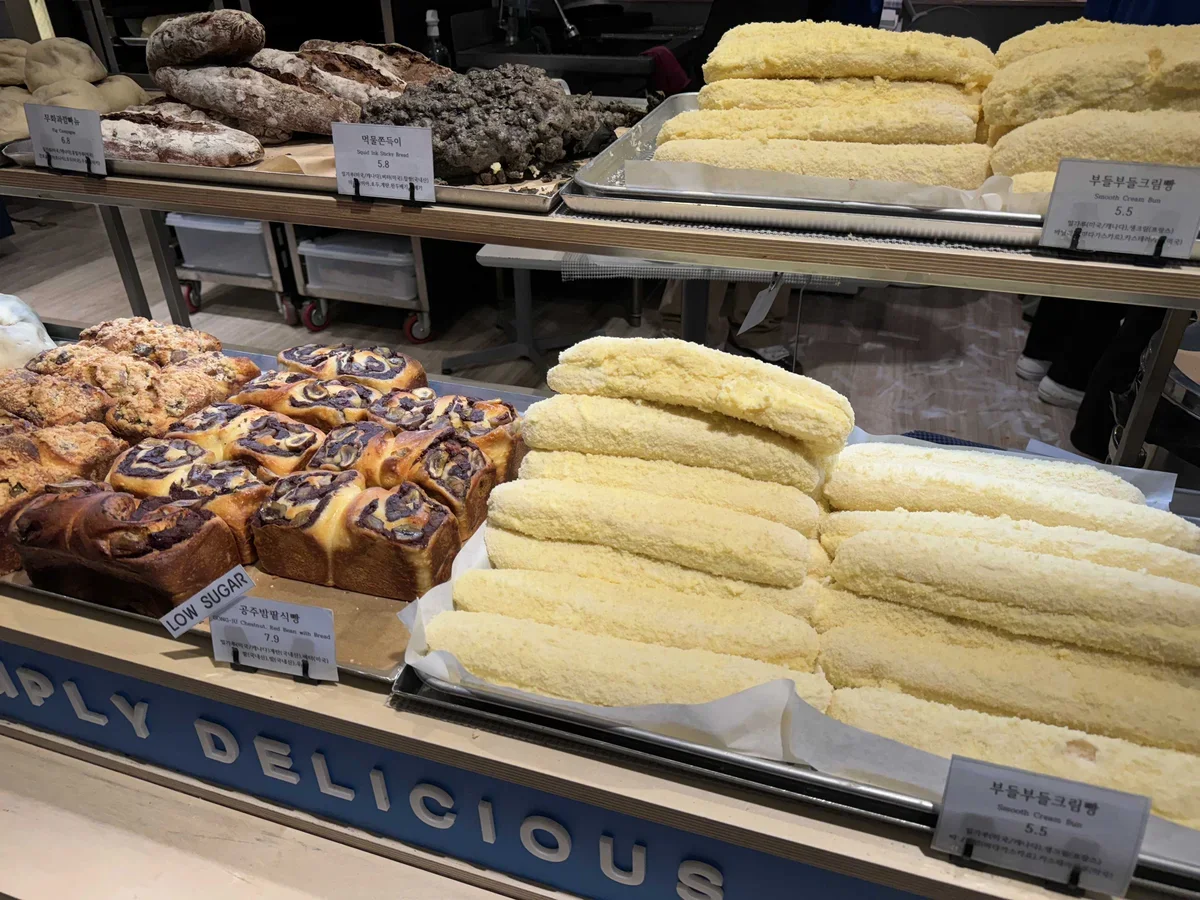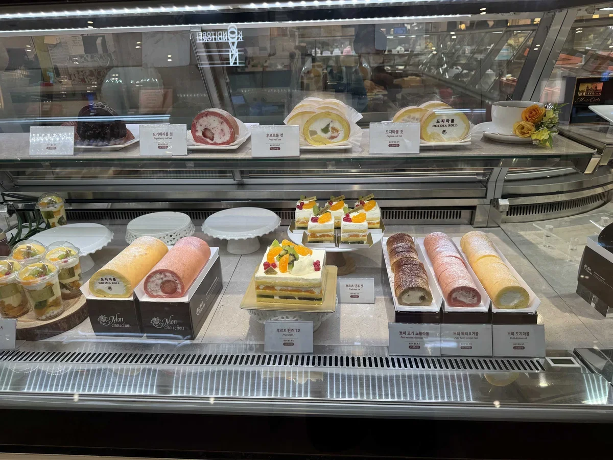 Здесь несколько зон. Одна – с кофейнями, другая с выпечкой, десертами и едой навынос (есть в том числе суши, кимбапы, жареная курица, поке и упакованные корейские закуски). Третья зона – с ресторанами и столиками. Здесь в ресторанах огромный выбор корейских, китайских, японских блюд.