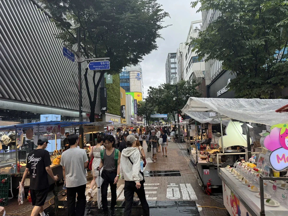Самый большой выбор стритфуда в Сеуле мы видели на торговой улице Мёндон (Myeongdong).