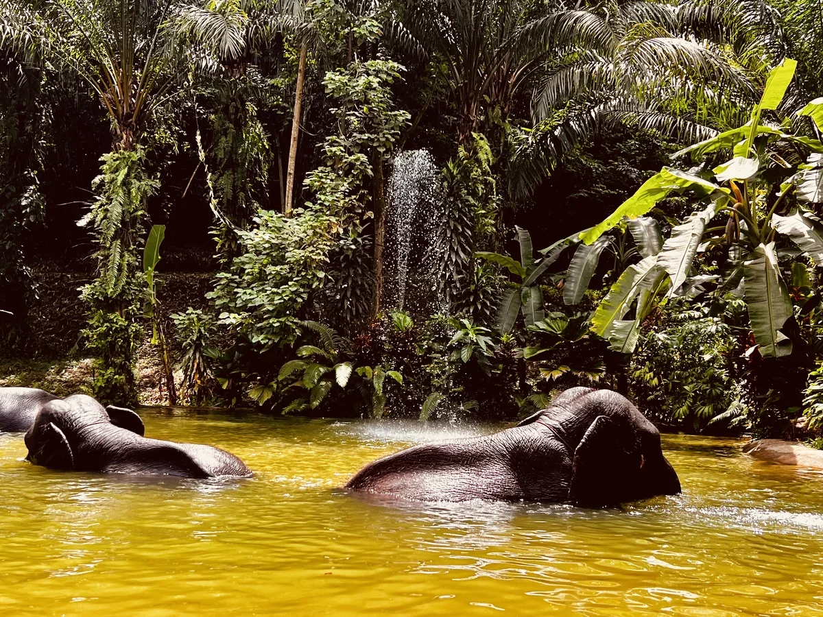 Например, слон встречает гостей исторического зрелищного представления «Сиам Нирамит». Зрители совершают путешествие во времена первых тайских государств, знакомятся с богатейшей историей страны, в том числе с древним Сиамом, тайскими праздниками.