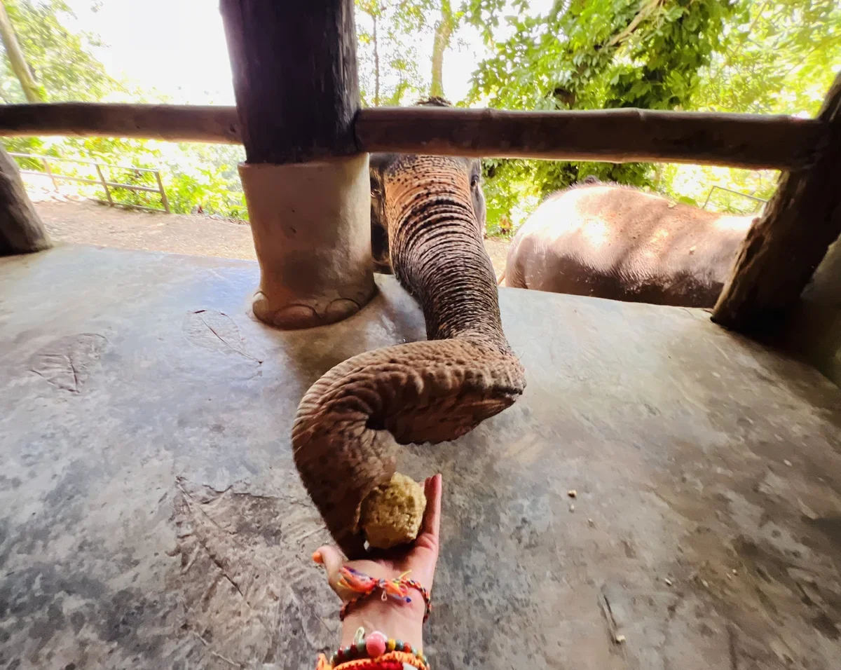 Когда будете угощать слона приготовленными для него своими руками котлетками из риса, бананов, куркумы, гороха и муки, смотрите животному в глаза. Вы увидите в них благодарность. Всегда можно в дополнение к своему кулинарному творчеству, купить для слонов корзинки с бананами и бамбуком. Стоят такие по 100 бат.