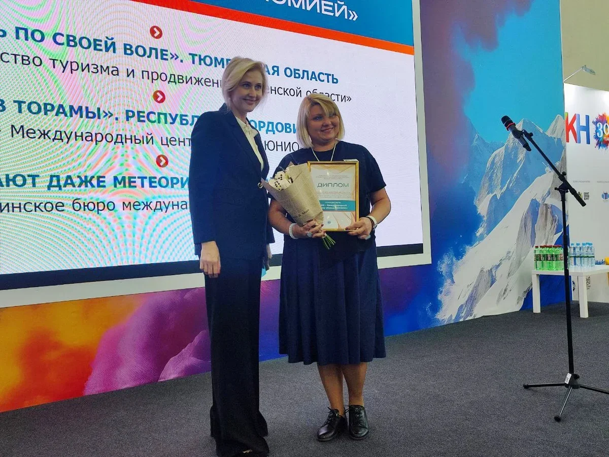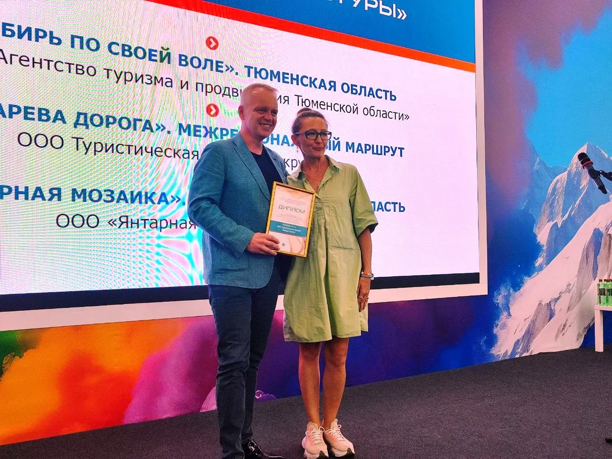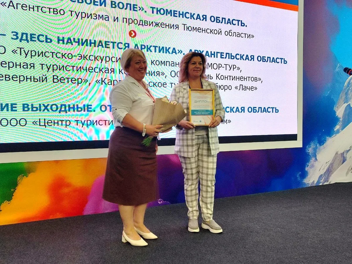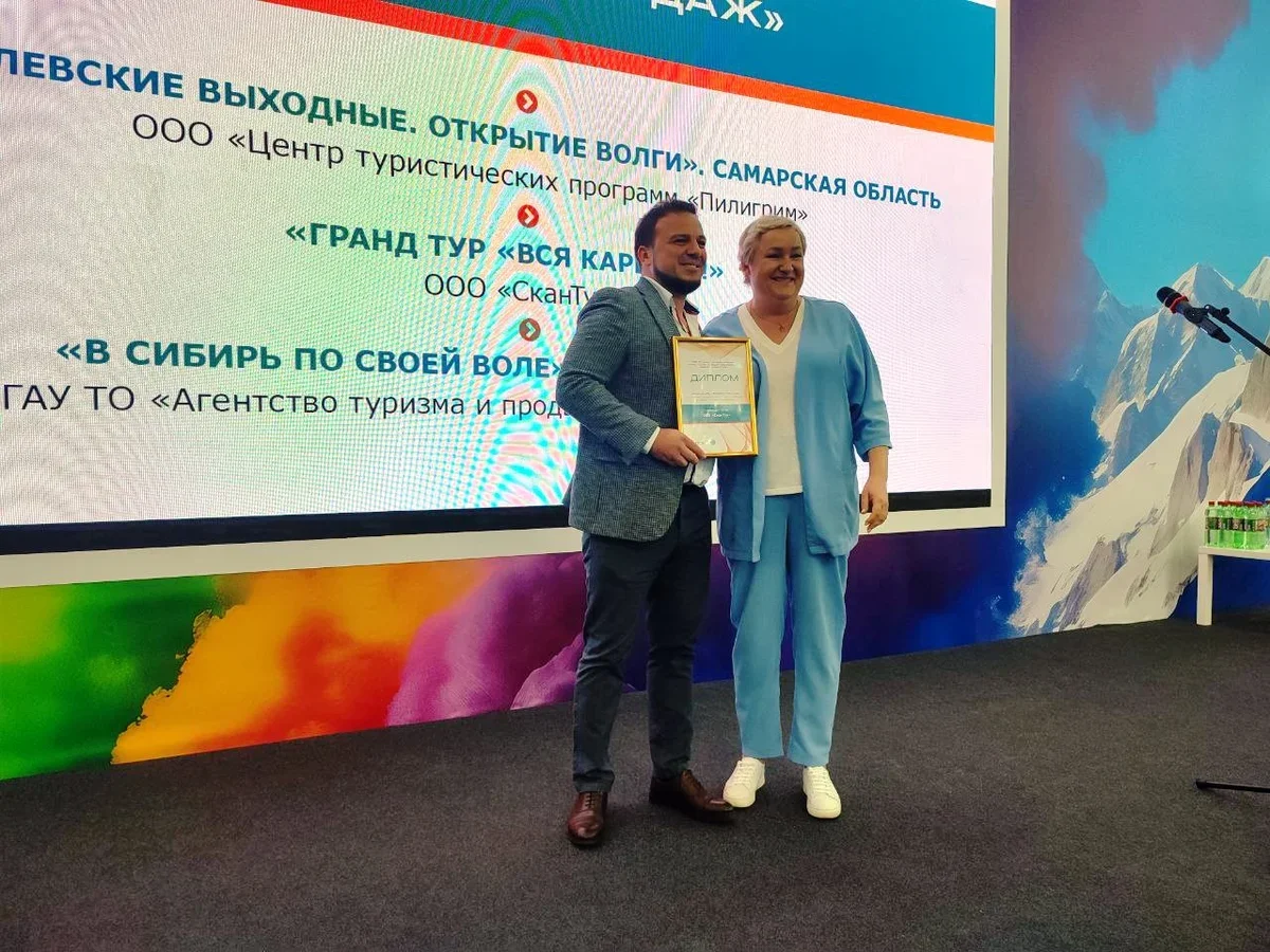 Диплом на сцене получала Оксана Лебедева, исполнительный директор группы компаний «Тари Тур», создателя этого маршрута.