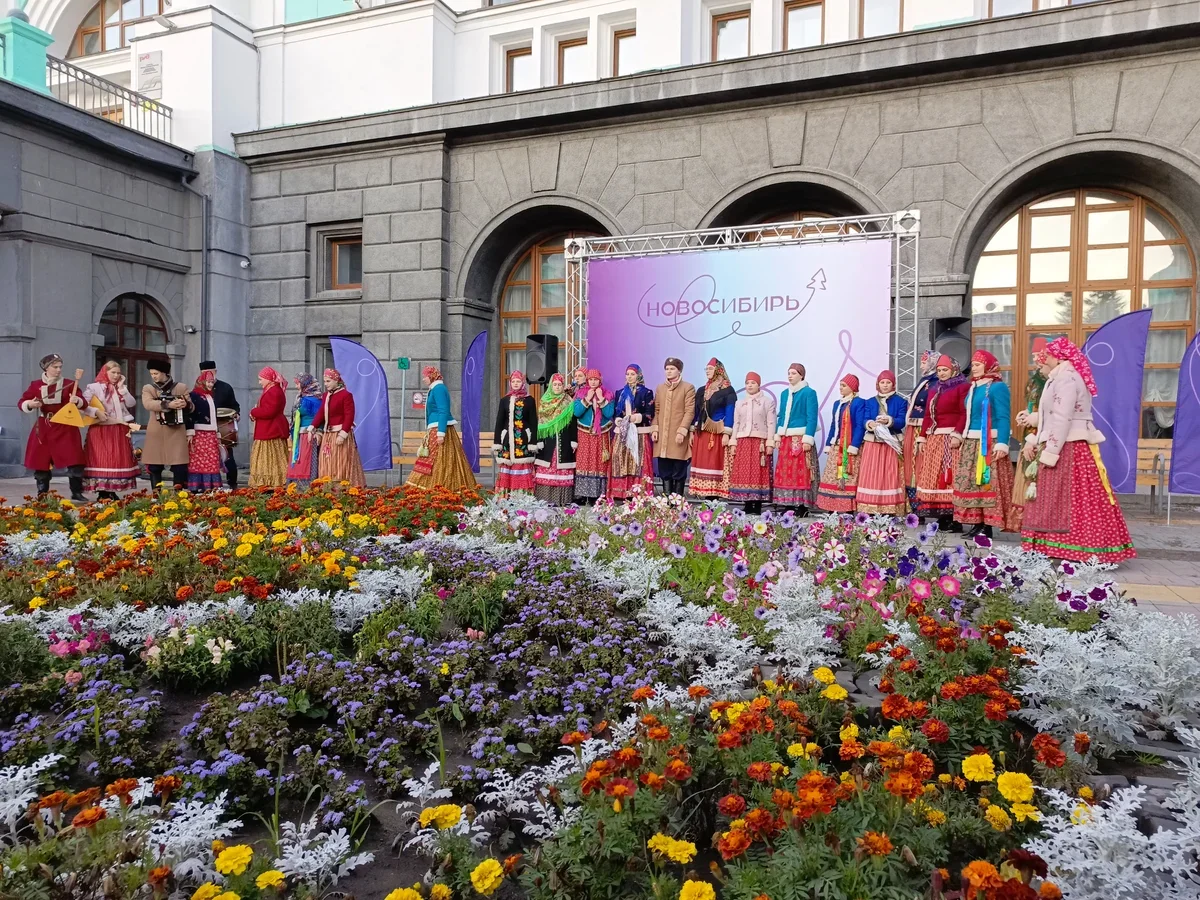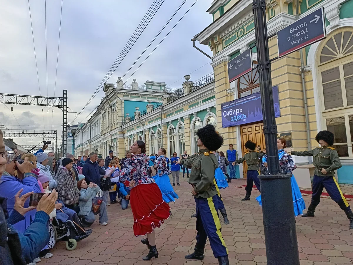 Несмотря на сибирское прохладное утро (температура всего +9 градусов), на новосибирском железнодорожном вокзале в этот день было жарко – на платформе гостей встречал местный фольклорный ансамбль «Сибирочка» в стилизованных под старину русских нарядах. Путешественники смогли принять участие в традиционных сибирских фольклорных забавах и покружились в хороводе.