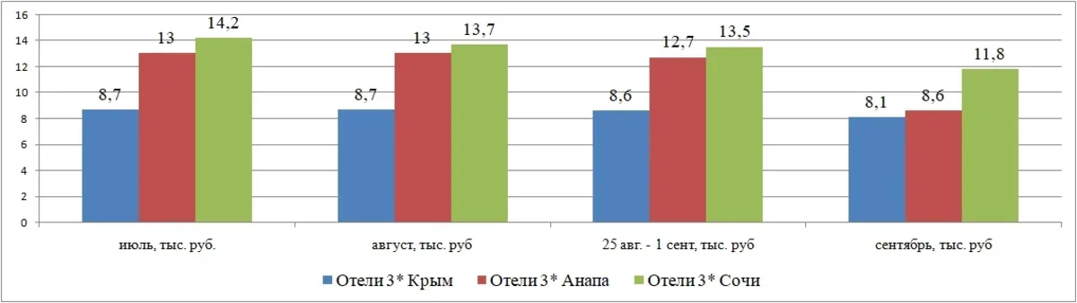 СРЕДНИЕ ЦЕНЫ НА ОТЕЛИ 3* В КРЫМУ, СОЧИ И АНАПЕ