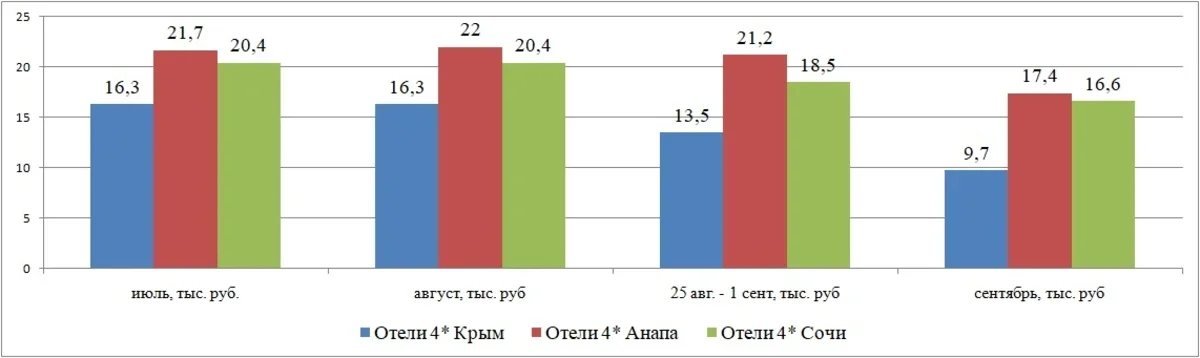 СРЕДНИЕ ЦЕНЫ НА ОТЕЛИ 4* В КРЫМУ, СОЧИ И АНАПЕ