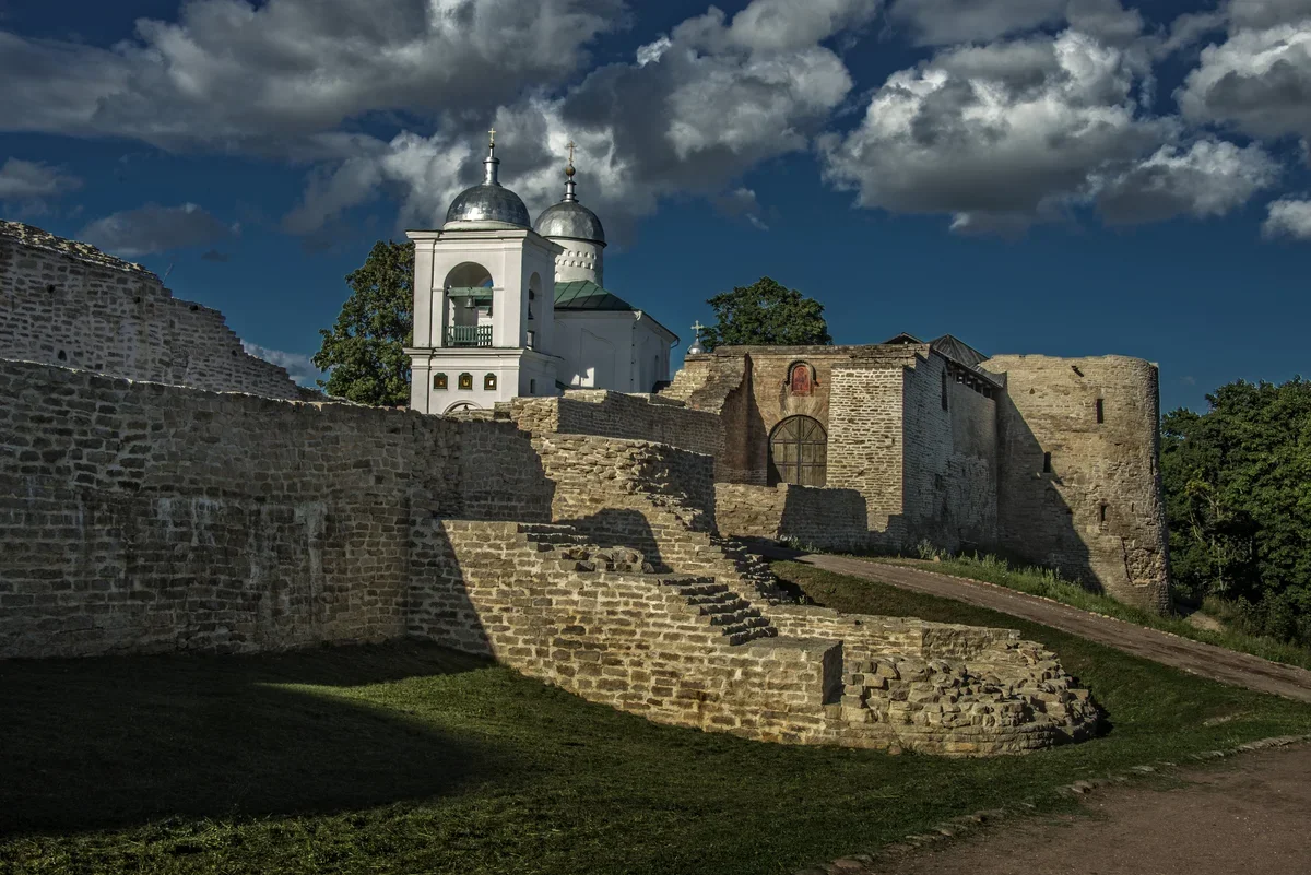 А еще железный град Изборск впечатлит нас своей крепостью, которая хорошо сохранилась до наших дней и включает в себя прясла стен, семь башен и два «захаба» – это фортификационные сооружения, защищавшие крепостные ворота.