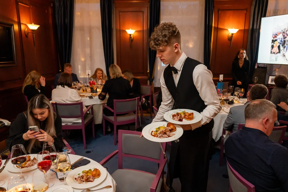 Исторический экскурс на тему «Петровских ассамблей» сопровождал подачу эксклюзивных блюд и напитков, часть из которых готовилась и сервировалась прямо в зале. Теплая, уютная атмосфера ресторана и интеллектуальная презентация искусствоведа и сомелье погрузили директоров агентств в атмосферу петровского времени.