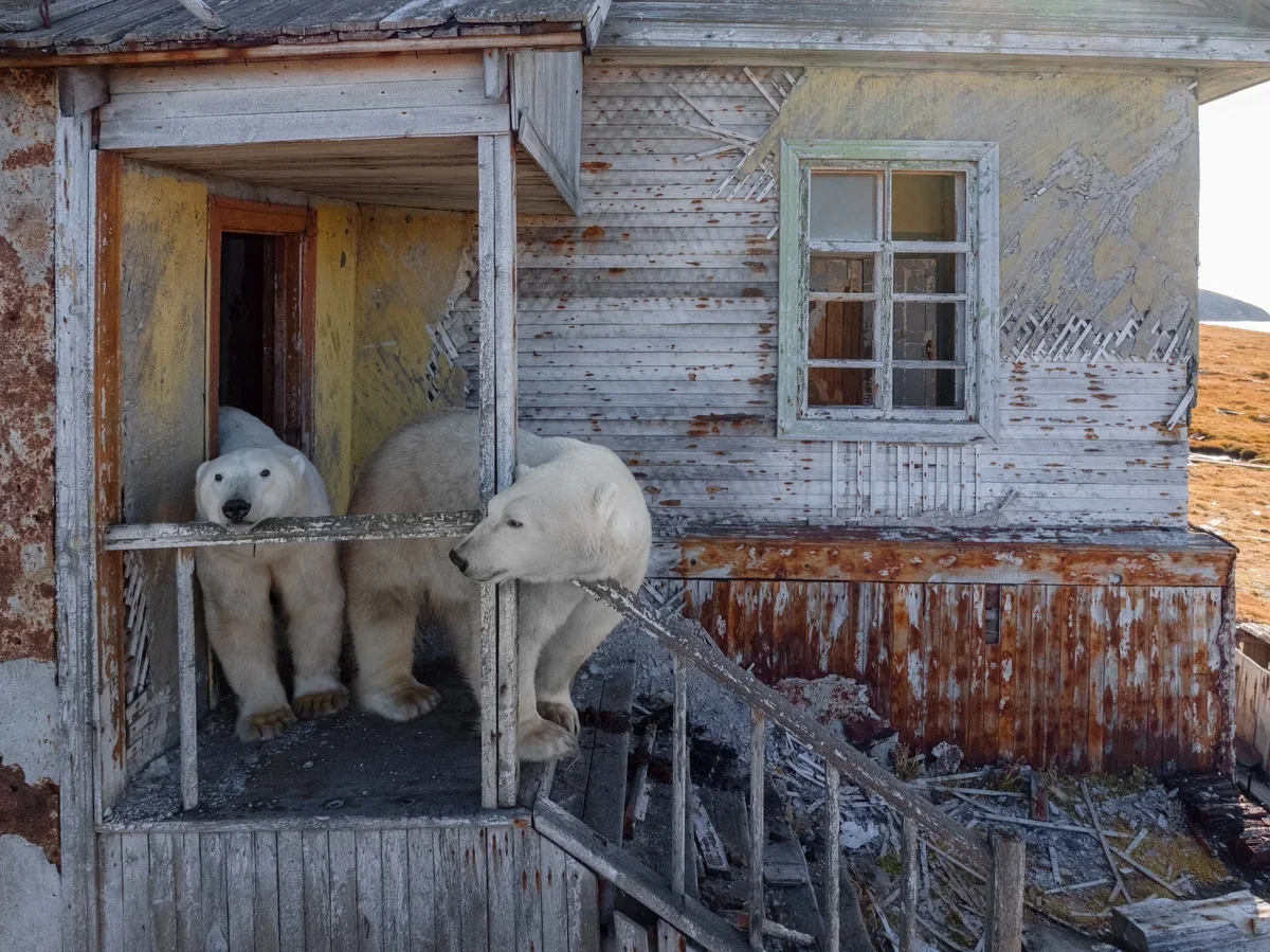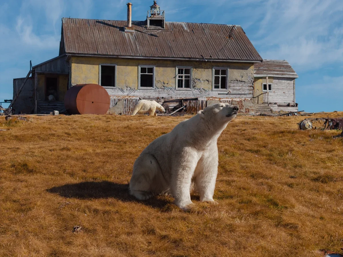 Когда-то здесь работала полярная научно-исследовательская станция, но место давно превратилось в город-призрак. Зато безлюдный остров облюбовали моржи, морские птицы и, как выяснилось, белые медведи. Дома для них – уютное укрытие от ветра и дождя.