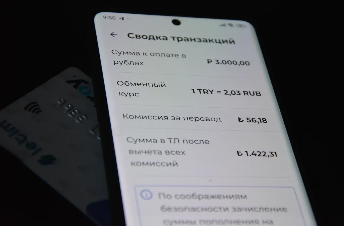 Вам сразу покажут курс конвертации и то, сколько лир вы получите на карту с учетом небольшой комиссии, которую берет система за конвертацию.