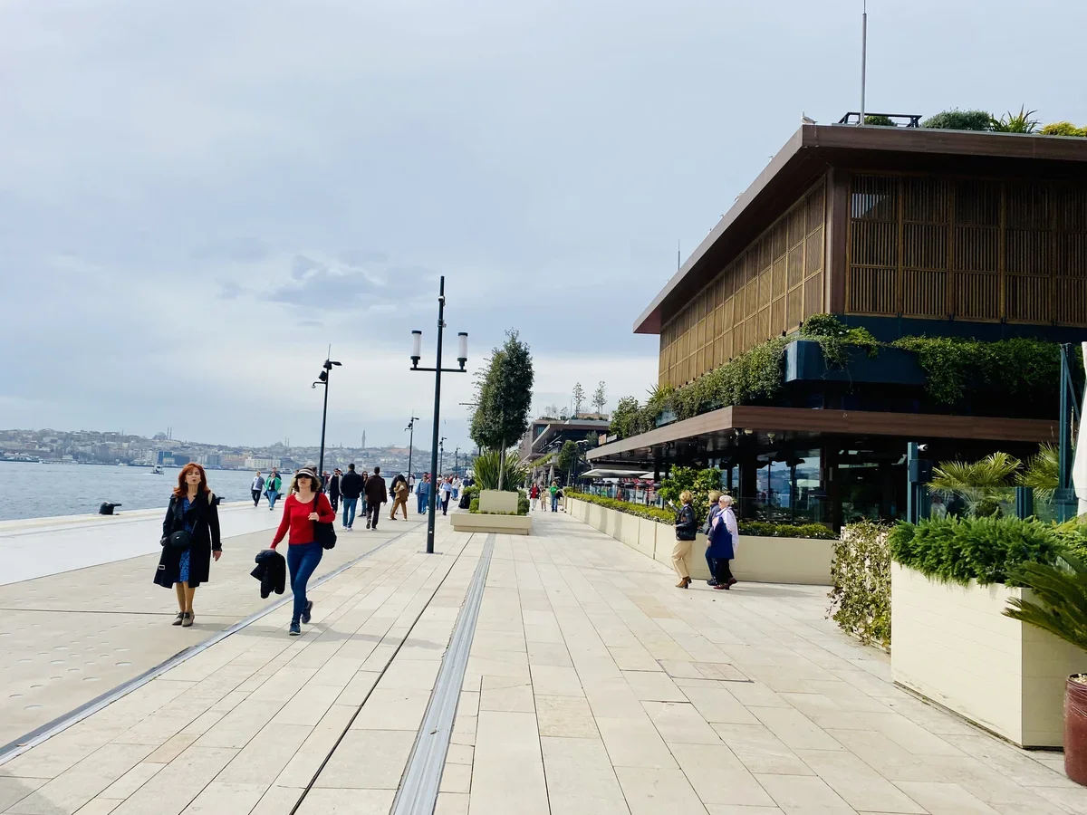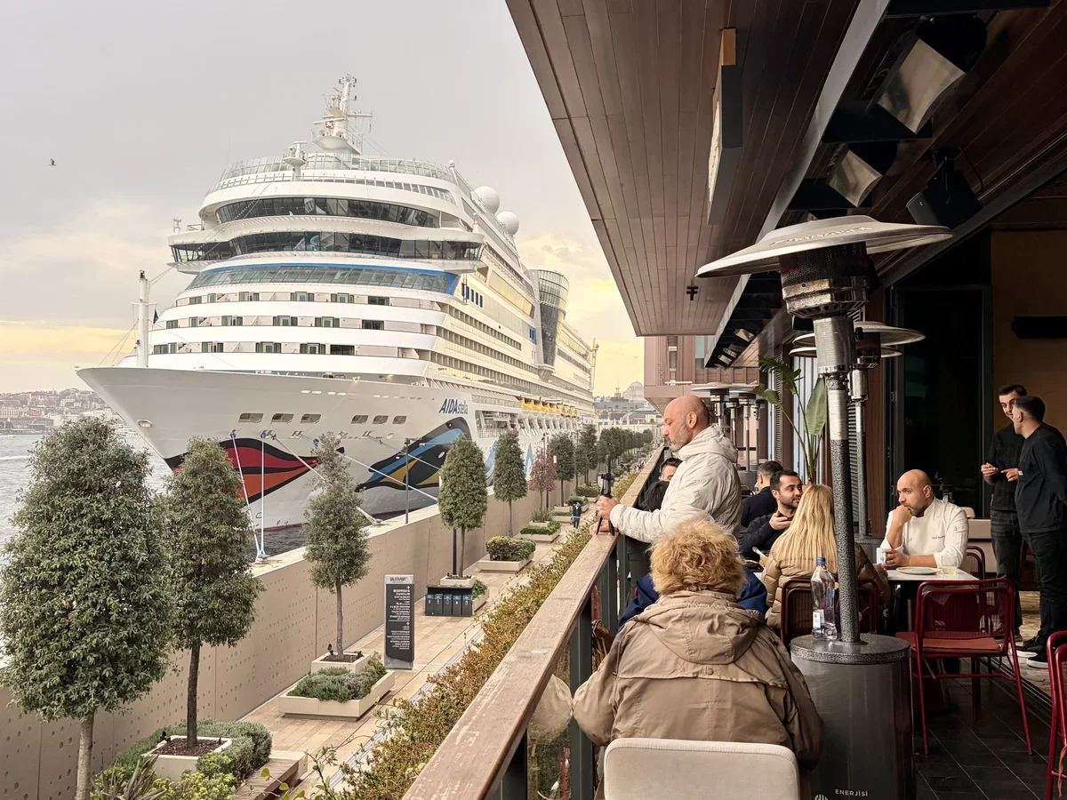 На набережной Галатапорта можно заметить очень занятную инженерную конструкцию: когда причаливают круизные лайнеры, места их швартовки закрываются подъемной сплошной загородкой, чтобы иностранные туристы не разбегались неподконтрольно, а на борт нельзя было попасть «с улицы». Когда лайнер уходит, ограждение опускается и набережная вновь становится целиком доступной для прогулок. И любоваться видами можно уже и с нижнего уровня.