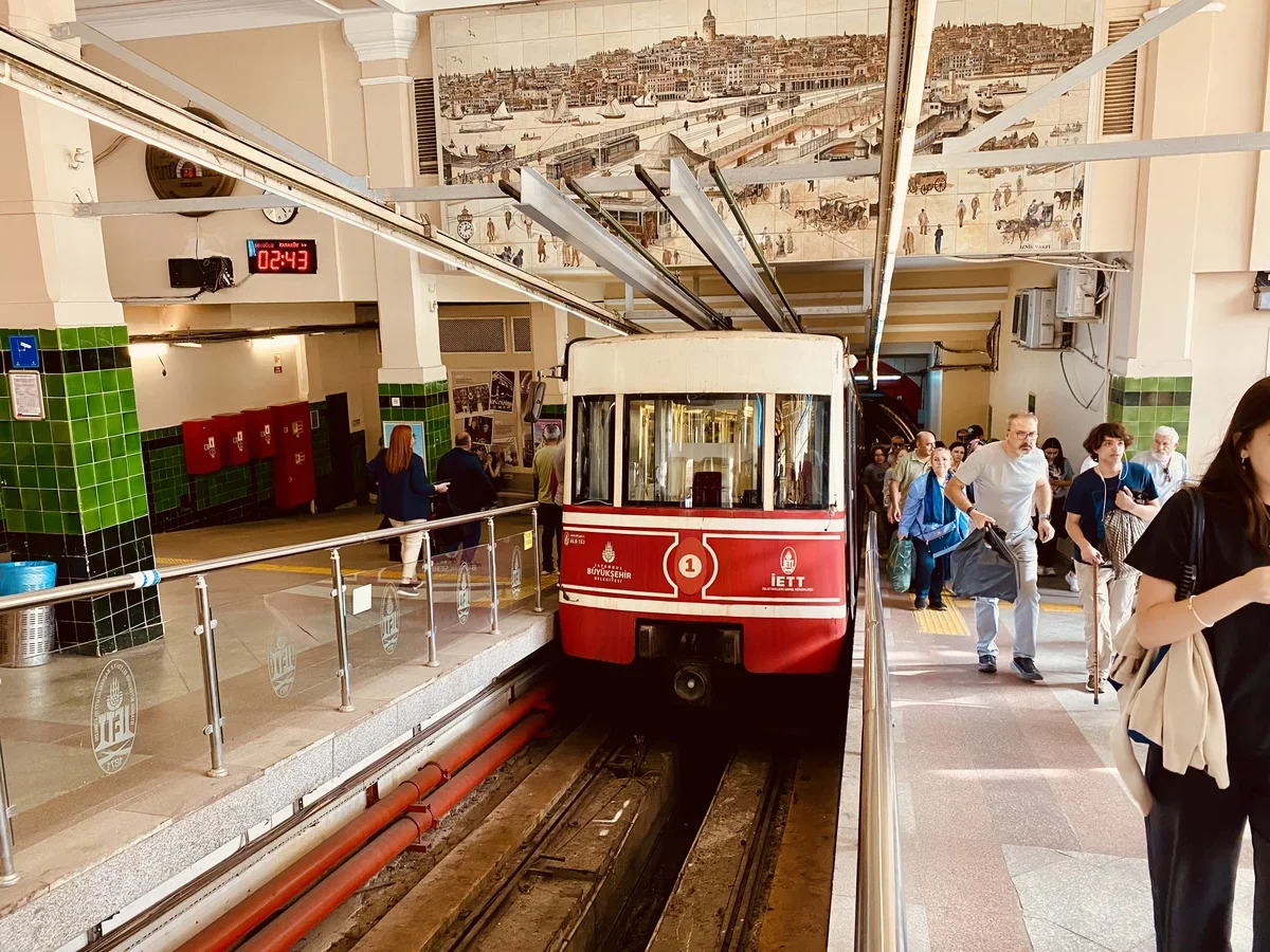 Заходишь в исторический вестибюль, а выходишь из него уже в современном, шумном центре. Сама станция Бейоглу находится под небольшим углом, что создает необычный оптический эффект, который любят фотографы.