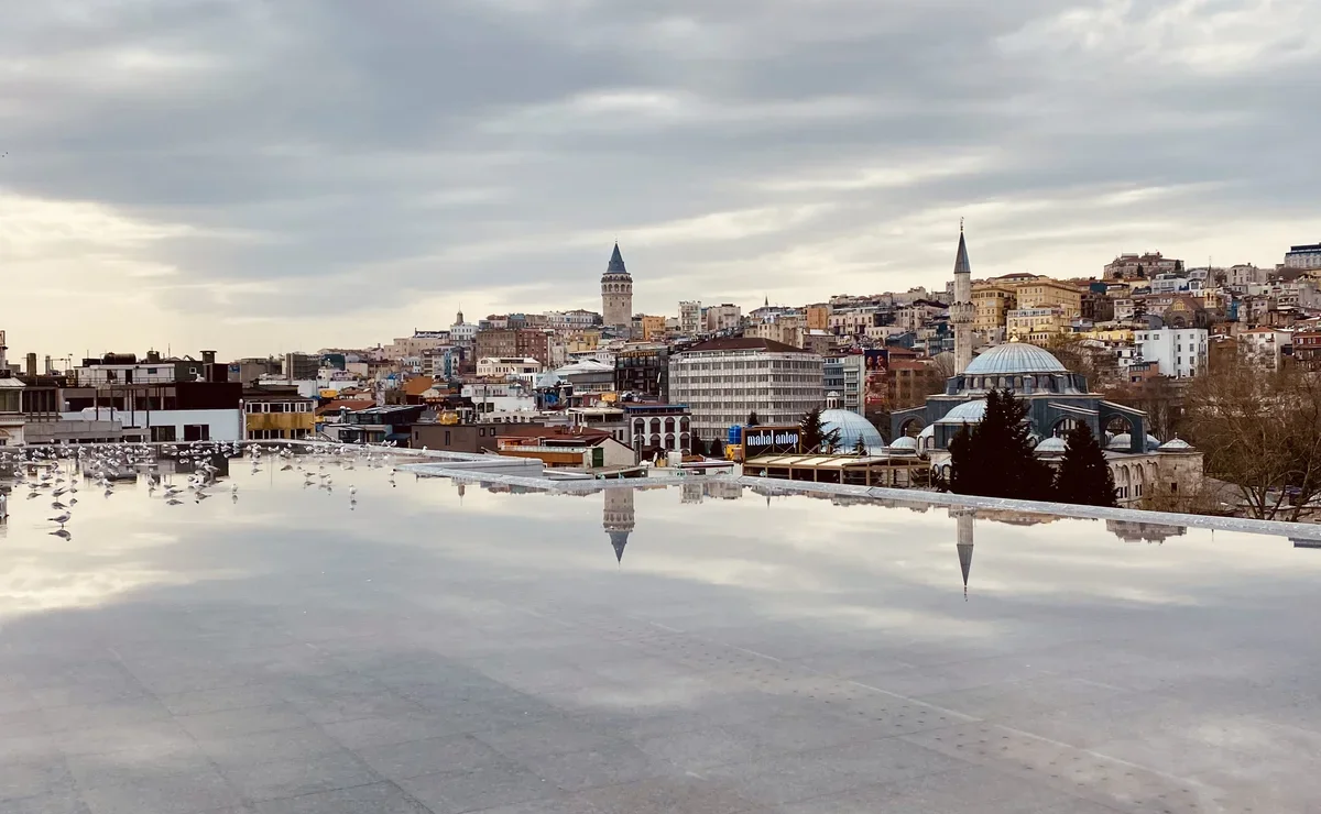Прозрачный первый этаж стирает границы между внутренними помещениями и городом снаружи, открывая вид на набережную. Бонусных баллов «модности» места, безусловно, добавляет терраса музея: вид на дворец Топкапы здесь лучше, чем с парома. А крыши Стамбула отражаются в серебристой воде бассейнов, где плескаются упитанные чайки.