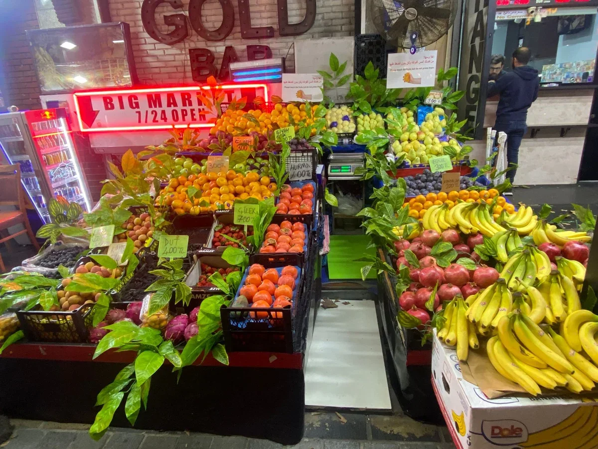 - Ноябрь: пик сезона гранатов, хурмы, фиников; зреет айва, цитрусовые.