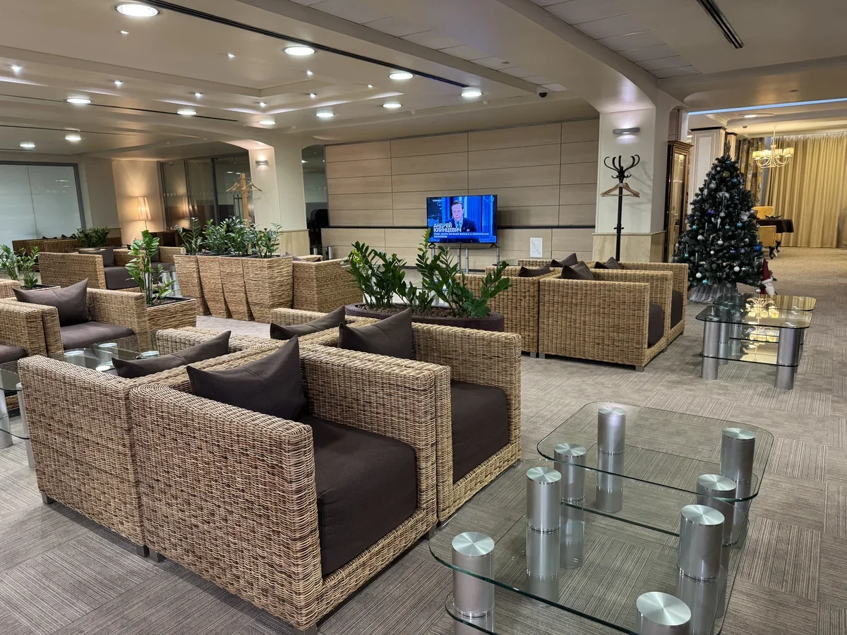 Бонусом для нашей группы от аэропорта стал проход в лаундж Horison. Там тишина, удобные кресла, широкий выбор блюд, свежие фрукты и десерты – идеальная «подзарядка» перед полетом.