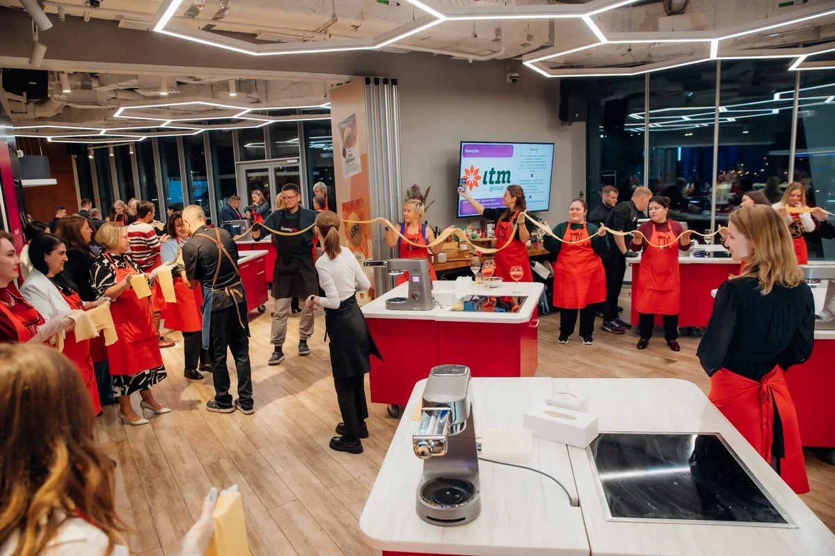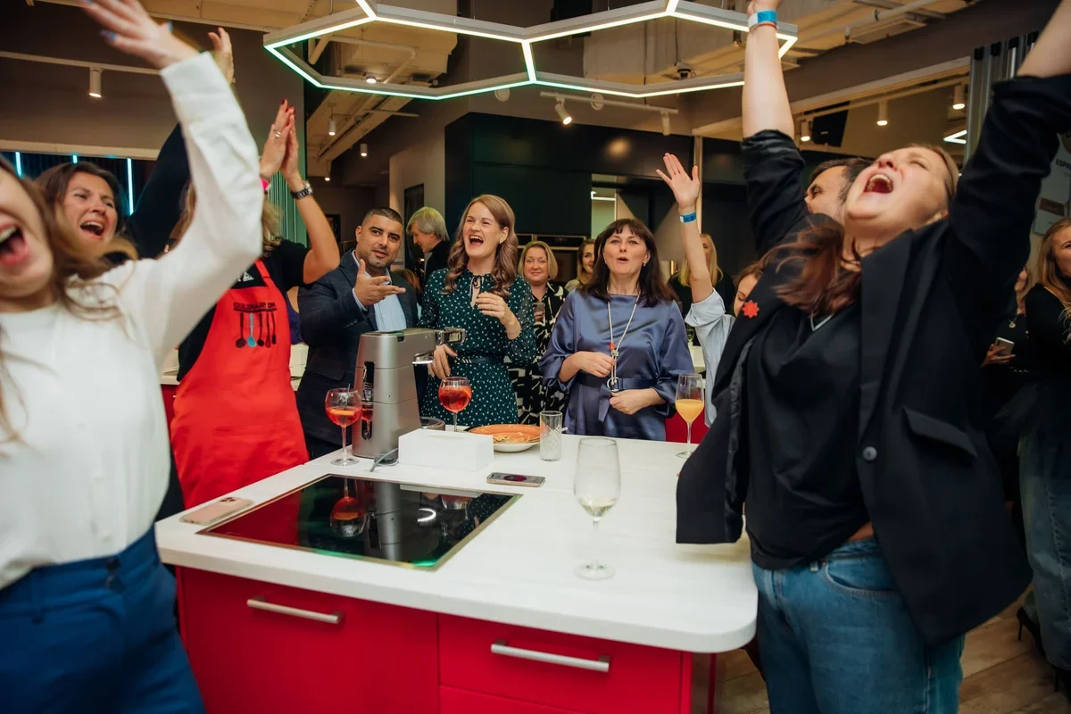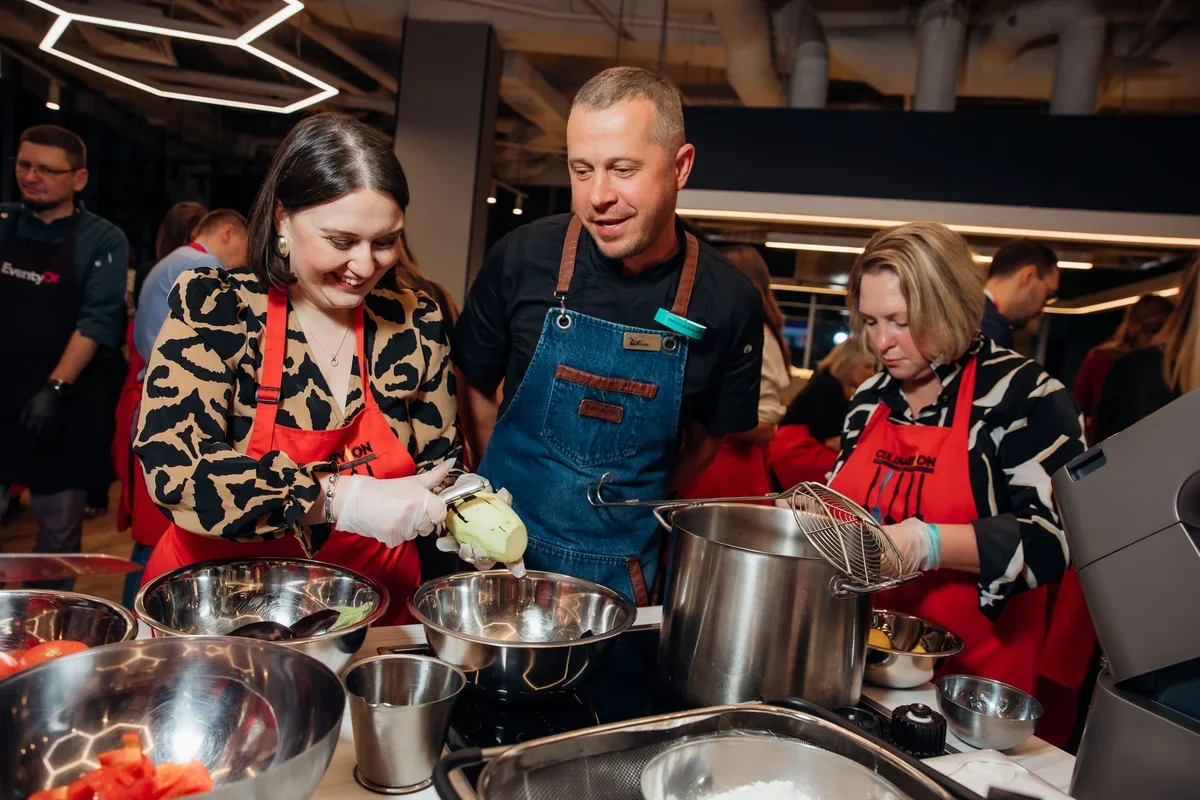 Гости разделились на несколько команд и приступили к совместному приготовлению разных блюд под зажигательную музыку, которая заставляла двигаться в ее такт даже самых сосредоточенных кулинаров.