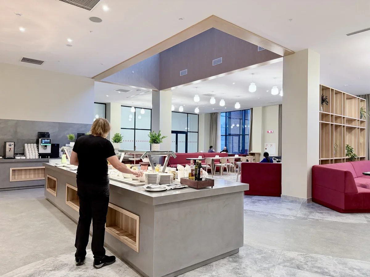 - для гостей – современный SPA-центр с двумя бассейнами и термальной зоной, фитнес-зал, уникальный панорамный конференц-зал и 6 переговорных комнат для деловых мероприятий