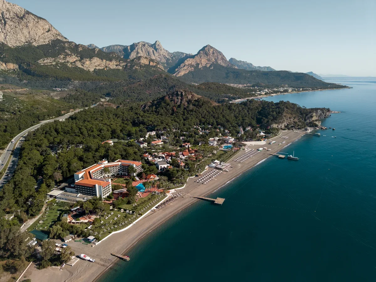 Курорт расположен на берегу Анталийского побережья у подножия Таврских гор. В распоряжении гостей – пышные сады, знаменитые кемерские сосны и 800-метровый частный пляж.