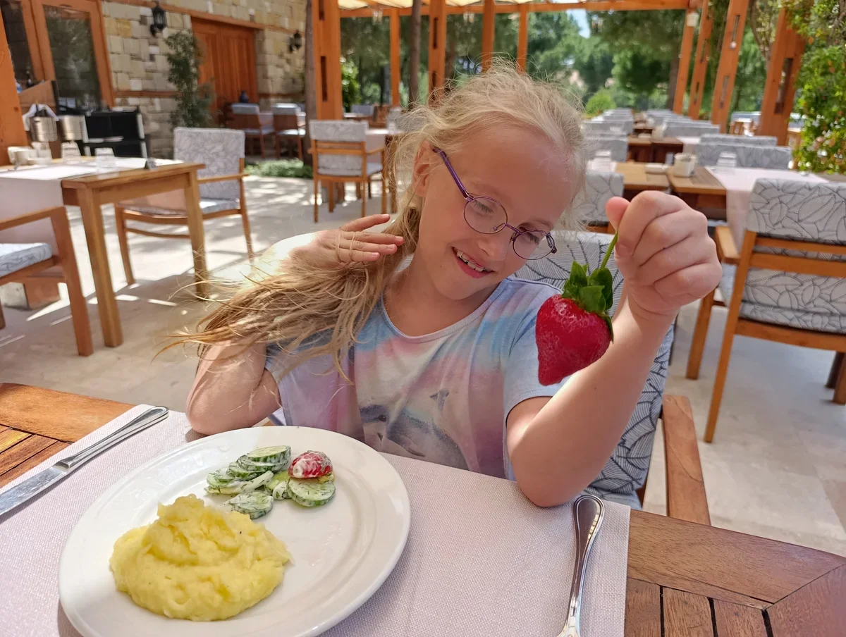 Можно найти даже русские пельмени (по уверениям детей – «почти как наши»), среди гарниров кроме прекрасного турецкого риса и макарон, всегда есть натуральное и очень вкусное картофельное пюре.
