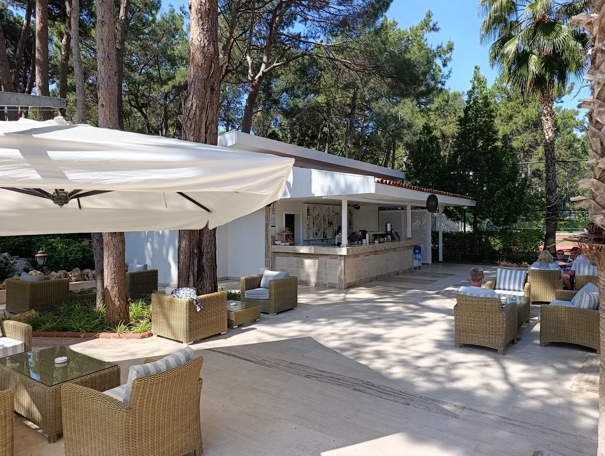 Рядом с бассейном – отдельный бар для гостей номеров Jasmine с большим выбором импортных напитков (в том числе пиво в стекле) и отличным турецким чаем и сладостями. При баре – чиллаут-зона с приятной музыкой и удобными креслами из ротанга, можно посидеть в теньке и расслабиться.