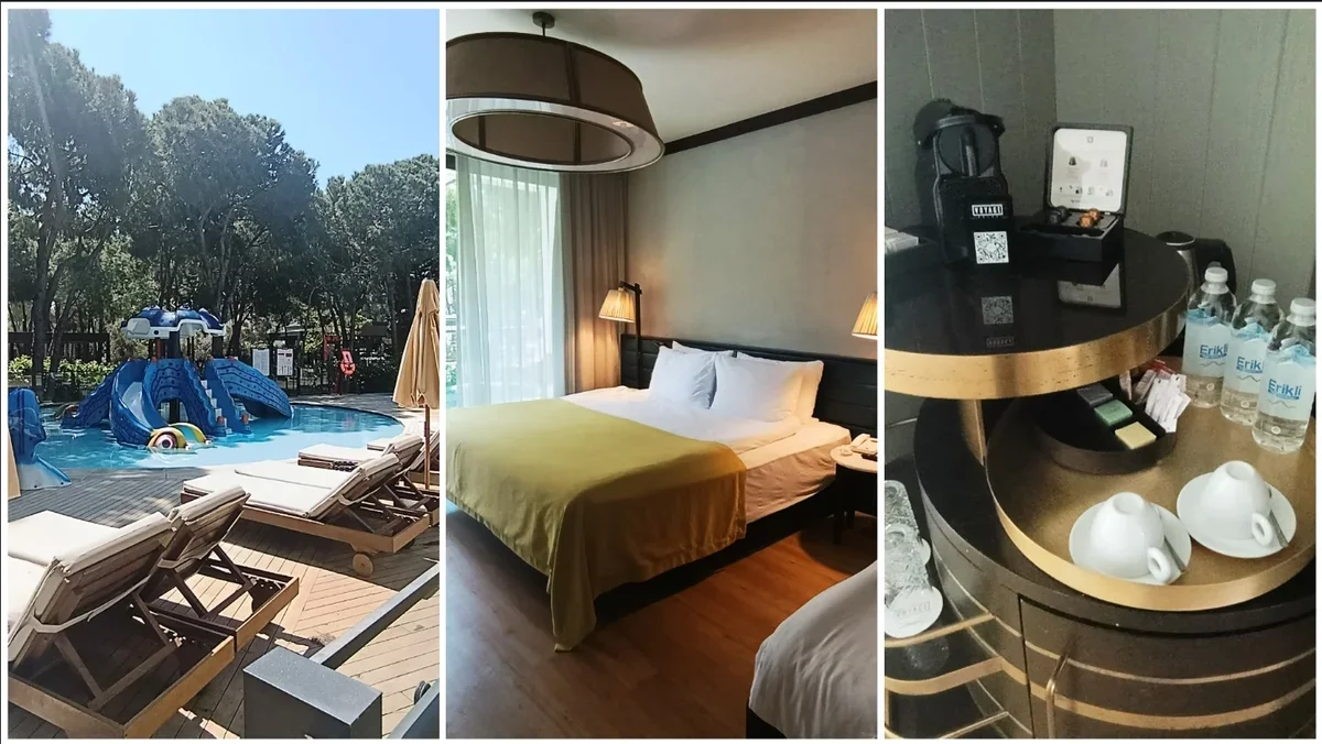 Что зацепило. Широкий выбор размещения: корпус А – с подогреваемым бассейнам, ближе к пляжу, как и основное здание. Корпус B – самый бюджетный вариант (и самый дальний от моря, бассейн без подогрева). Стандартные номера везде – 32 кв. м. Семейные номера – только в основном здании. Бунгало – отдельные домики рядом с аквапарком.