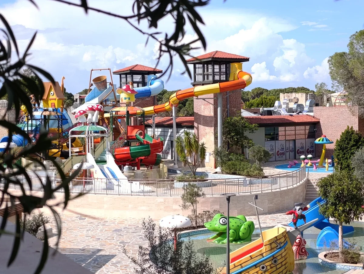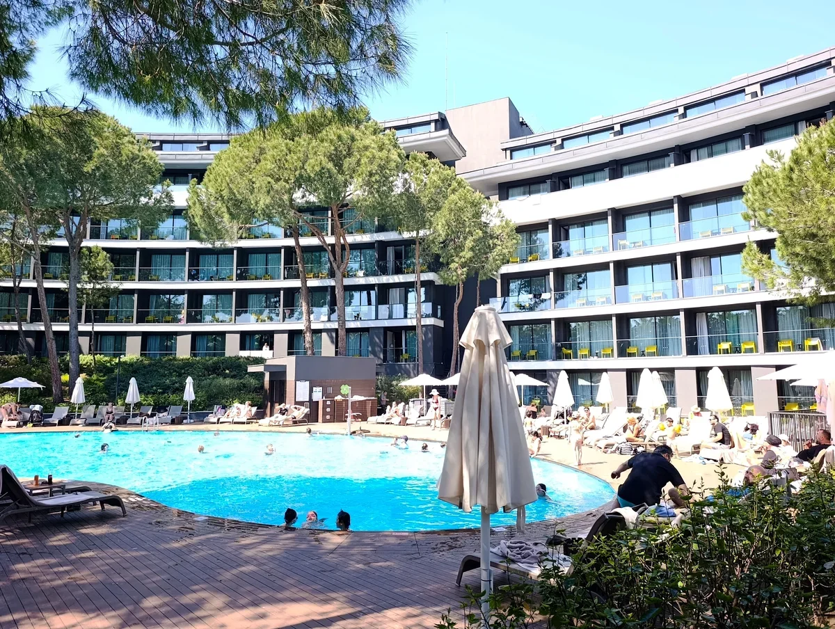 Питание. A'la carte рестораны в 2026 стали платными (10–15 евро), кроме круглосуточного Ela Anatolian 7/24 (бесплатный). Подогреваемые бассейны (открытый полуолимпийский, детский аквапарк, крытые в SPA). Территория компактная – всё рядом, не нужны багги.