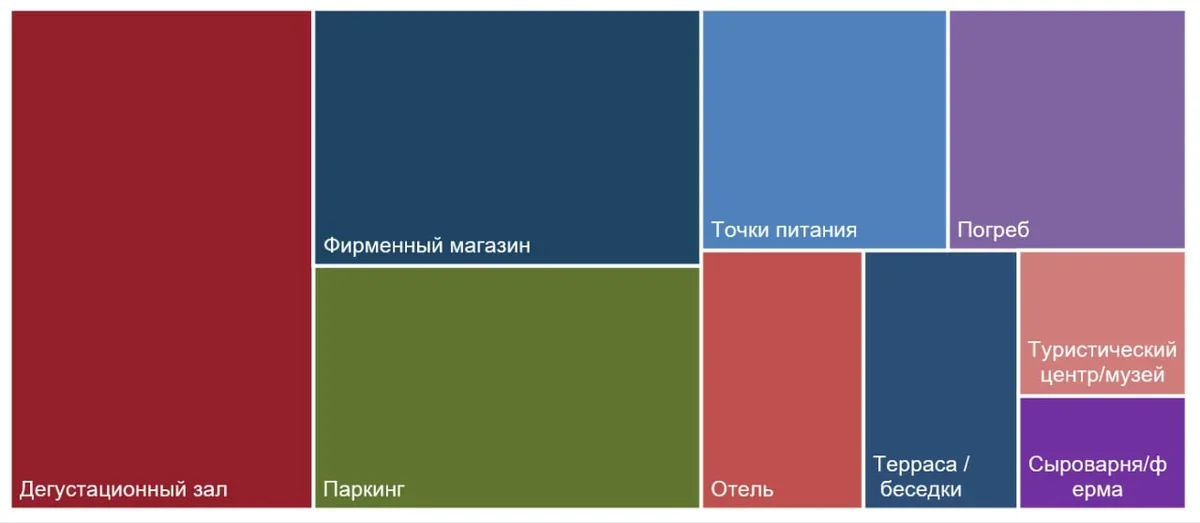 Инфраструктура на винодельнях, принимающих туристов. Источник: NF Group