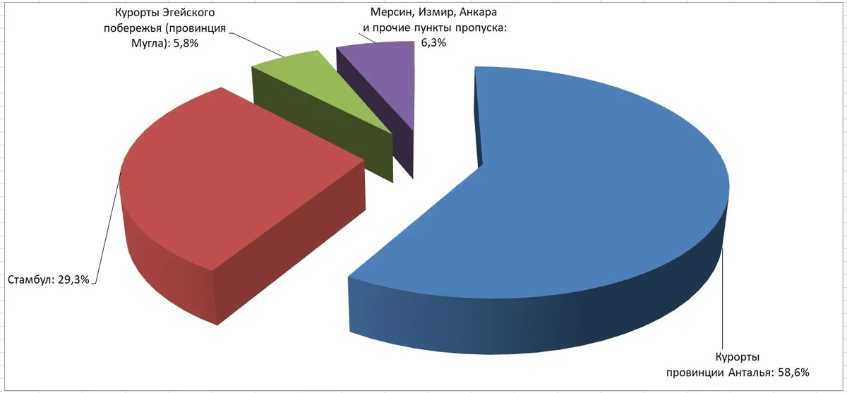 Как распределился российский турпоток по курортам и городам Турции в 2025 году
