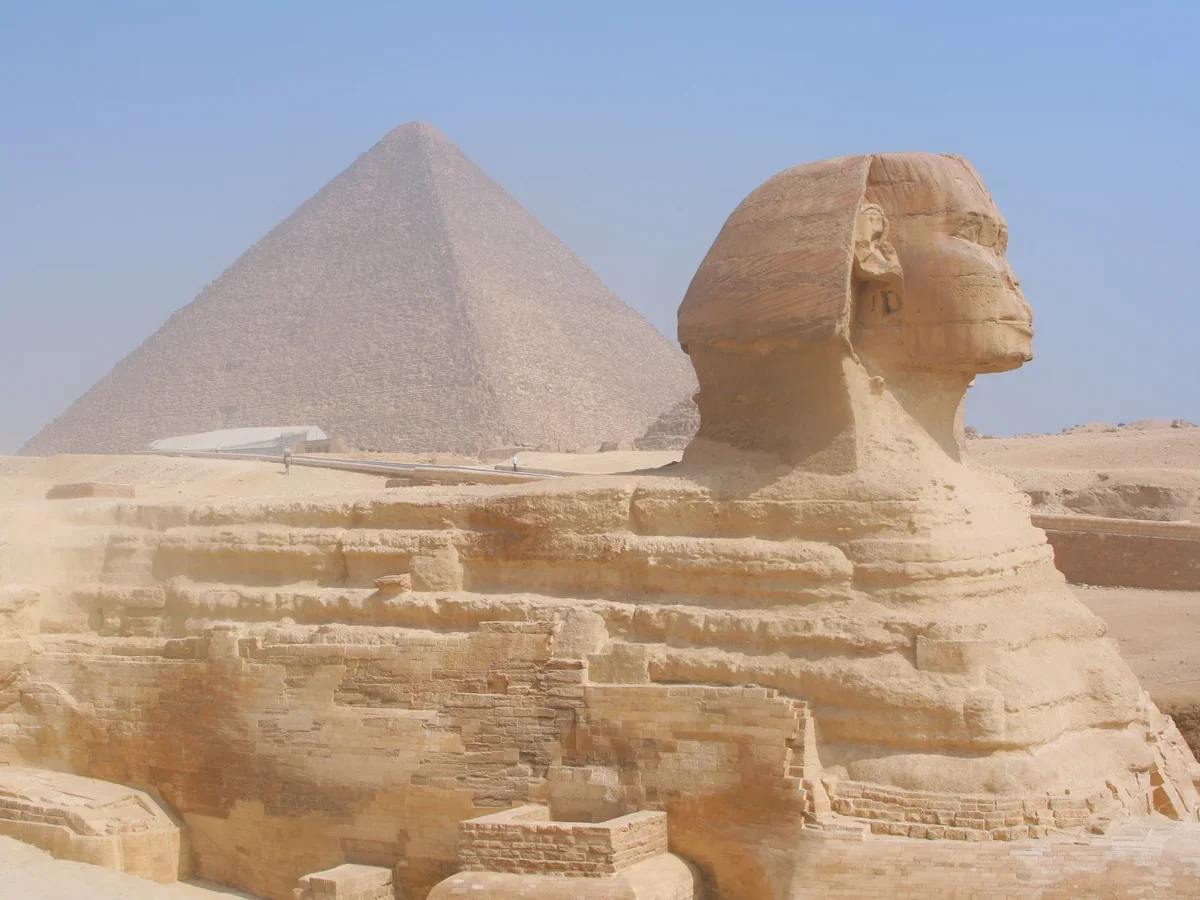 Сфинкс – тоже часть комплекса пирамид Гизы. И это самая большая монолитная статуя в мире. Ее длина составляет около 73 метра, а высота — 20 метров. По мнению большинства египтологов, Сфинкс был построен примерно в 2500 году до н.э.