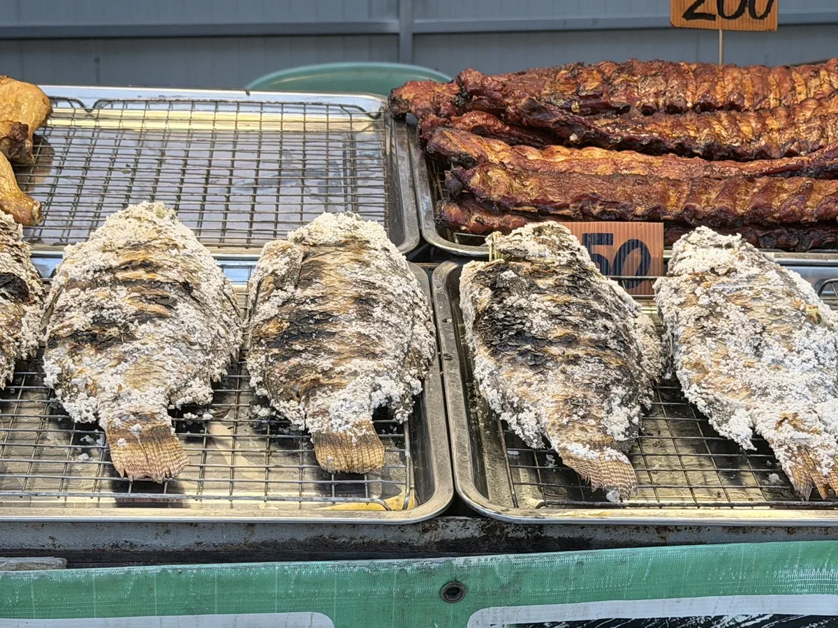 - Жареная рыба целиком (крупная, вкусная) – 100 бат (250 руб.)