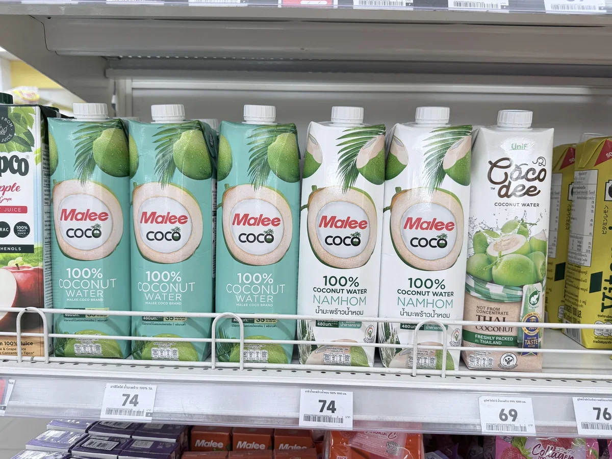 - Кокосовая вода – от 69 бат (171 руб.)