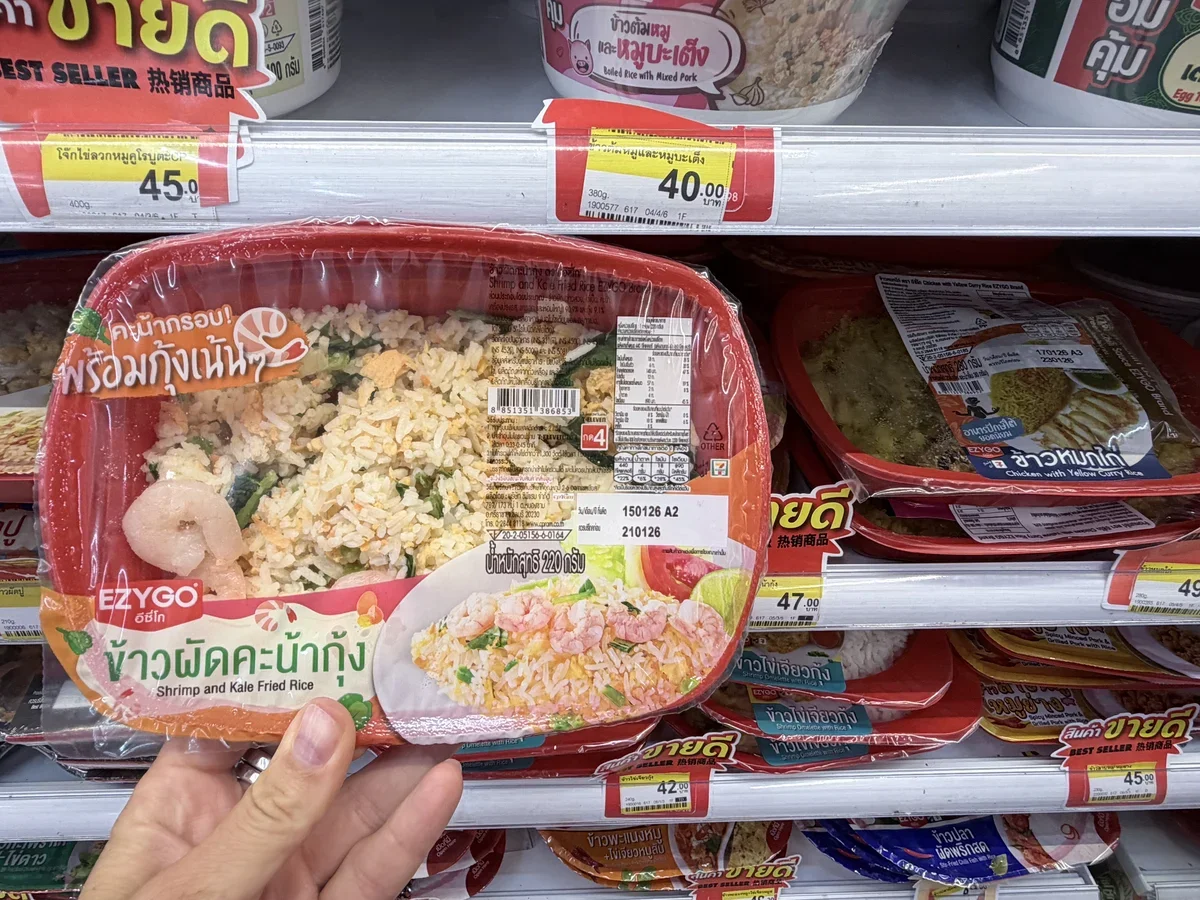 Ниже – фото с ценами на еду магазинах 7-Eleven и Lotus (снимки сделаны в январе 2026 года):