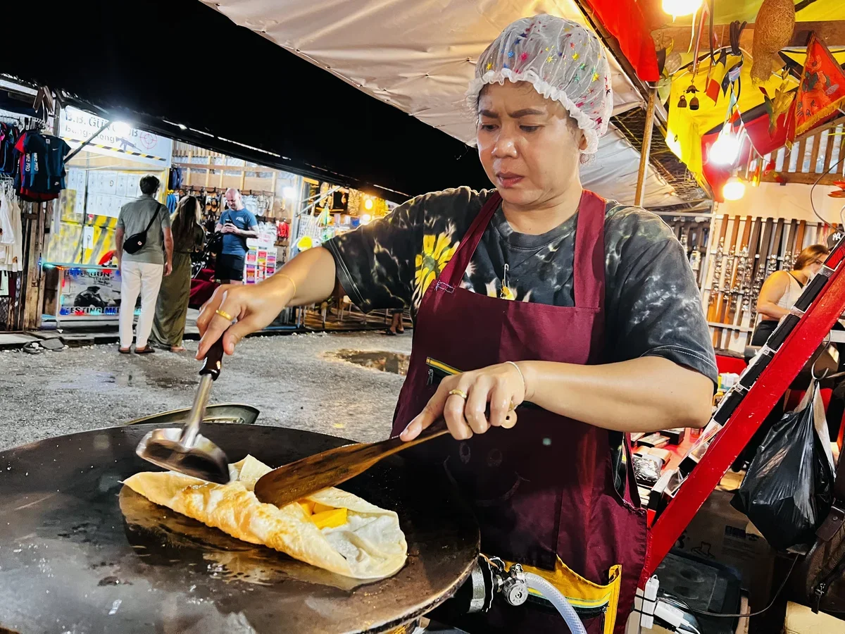 Прочувствовать энергетику уличной кухни помогут жареные на мангале морепродукты, курица, приготовленные на огне супы, всевозможные пирожки, пельмени, закуски. А как прекрасны блинчики с бананом или, скажем, с манго, политые шоколадной пастой. Заказываешь такие и потом не понимаешь, что с ними делать: то ли быстро съедать, то ли фотографировать блюдо, то ли себя на фоне блинов. С кокосовым мороженым такая же история.