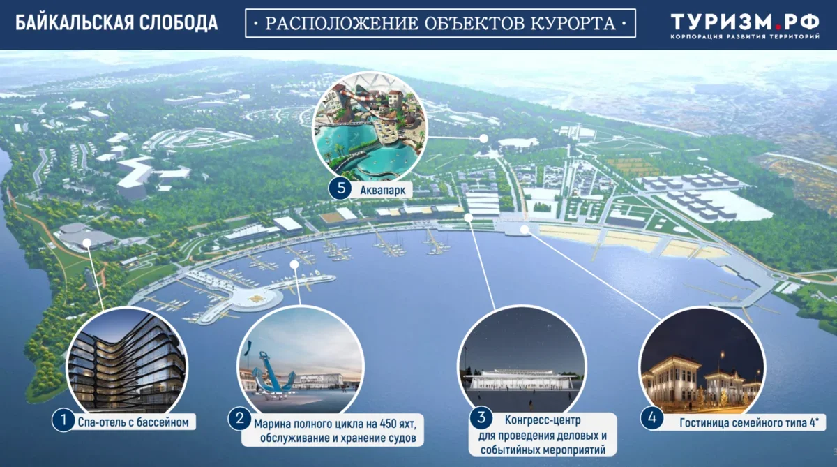 На 11 лотов из 27 есть желающие инвесторы и у проекта «Байкальская слобода» (Иркутская область). Здесь хотят построить spa-отель с бассейном, марину полного цикла на 450 яхт, конгресс-центр, гостиницу семейного типа 4* и аквапарк. Общий объем инвестиций – 54,1 млрд руб. введение первой очереди – в 2030 году.