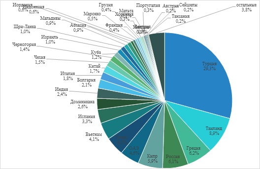 КАК РАСПРЕДЕЛИЛИСЬ ЗАПРОСЫ ТУРИСТОВ ПО СТРАНАМ В 2017 ГОДУ