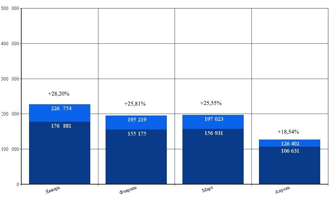 Январь – 226 754 человека – рост на 28,20% год к году;