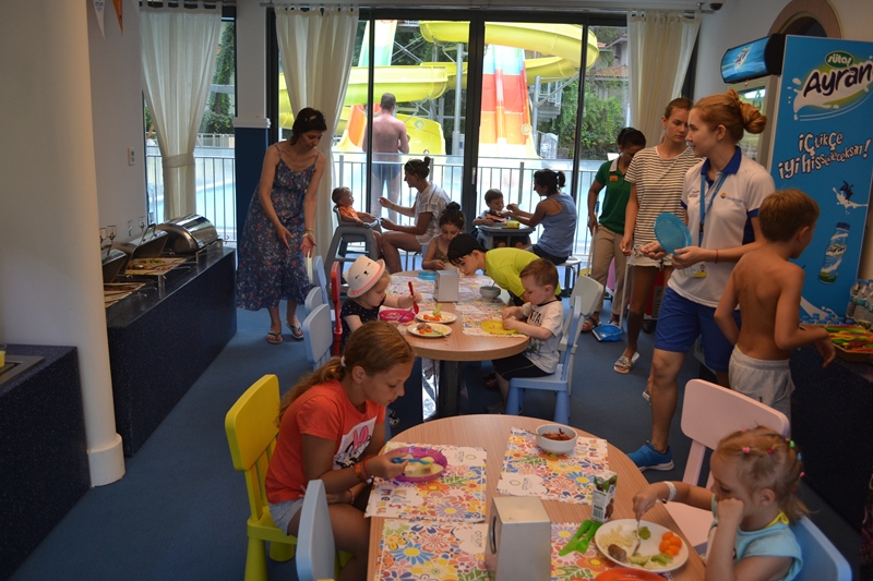 Впервые для Турции мини-клуб здесь стал принимать детей от двух лет без сопровождения родителей: заработала бесплатная «ясельная» группа с педагогом раннего развития. Пока малышей по предварительной записи можно оставить с ним на три часа (а родители маленьких деток прекрасно осознают ценность этого времени на отдыхе), в течение которых малыш может позаниматься с интересными конструкторами, полепить и порисовать.