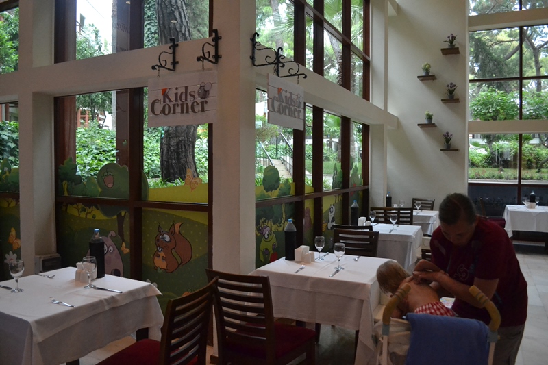 В основном ресторане для семей с малышами выделен «детский уголок» - родителям не надо искать детские стульчики или просить принести их – все уже приготовлено.