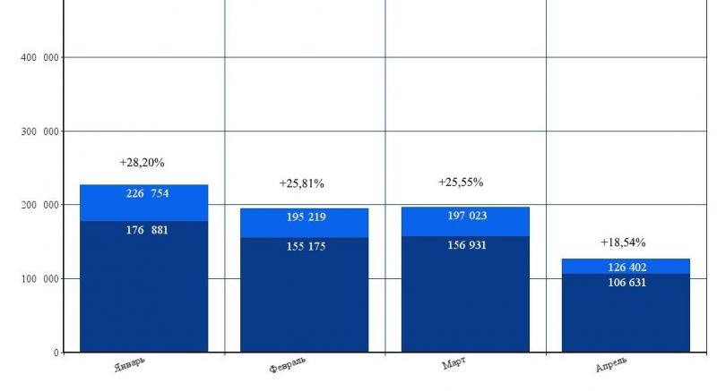 Рис. 1. Динамика российского турпотока в Таиланд в январе-апреле 2018 г.