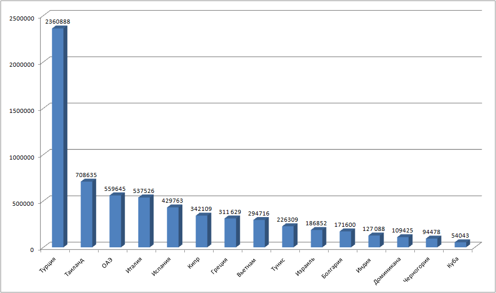 Это более чем релевантная база для статистики: отметим, что по данным статистики погранслужбы ФСБ России, за это время по ТОП-15 самым популярным пляжным туристическим направлениям дальнего зарубежья выехало 6,5 млн человек.