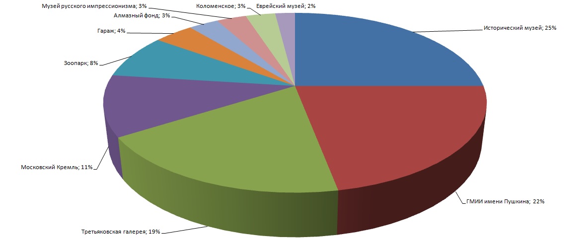 Согласно данным PASSCITY, в период проведения чемпионата мира (июнь – июль 2018 года) наибольшее количество посещений по картам PASSCITY было зафиксировано в следующих 10 московских музеях (по убыванию):