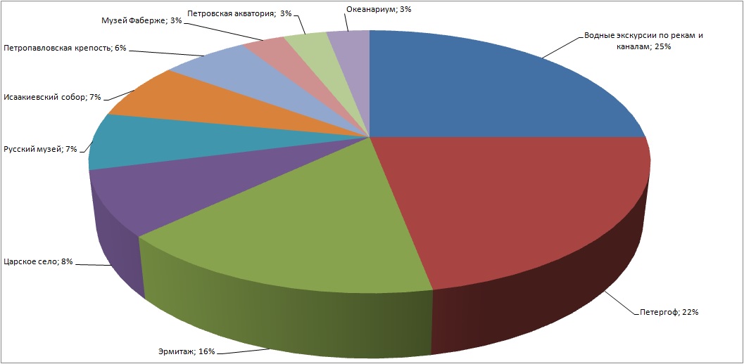Из-за этого изменения аудитории лидером по использованию карт PASSCITY неожиданно стали не входившие ранее в ТОП водные экскурсии по рекам и каналам города на Неве (с долей в 25% от всех визитов держателей карт PASSCITY на ТОП-10 объектов Санкт-Петербурга).